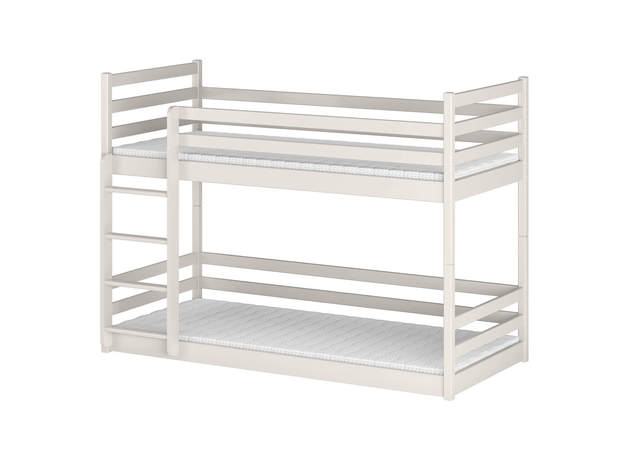Patrová postel MINI je kus nábytku, který byl vyvinut na základě zkušeností a pozorování těch nejmenších. Díky tomu se nám podařilo vytvořit řešení, které je mimořádně pohodlné, bezpečné a zároveň svým stylem zapadne do mnoha interiérů. K dispozici je také možnost volby strany montáže žebříku, díky čemuž je patrová postel MINI skvělou volbou bez ohledu na velikost a tvar dětského pokoje. Nečekejte a přidejte se ke spokojeným zákazníkům Lano Meble. Dvě děti v domě jsou jistě velkou radostí! V takovém případě však musíte vždy myslet na funkční řešení, která šetří místo. Patrová postel MINI tato očekávání dokonale splňuje! Takový nábytek je splněným snem každého prcka. Podívejte se, čím vás ještě překvapí. Konstrukce patrové postele MINI se skládá z borovicového dřeva, což je velmi pevný materiál. Toto řešení si jistě oblíbí každé dítě bez ohledu na věk či pohlaví. Dokonalé proporce postele a precizní zpracování zaručují pohodlný, klidný a hluboký spánek pro dvě děti.