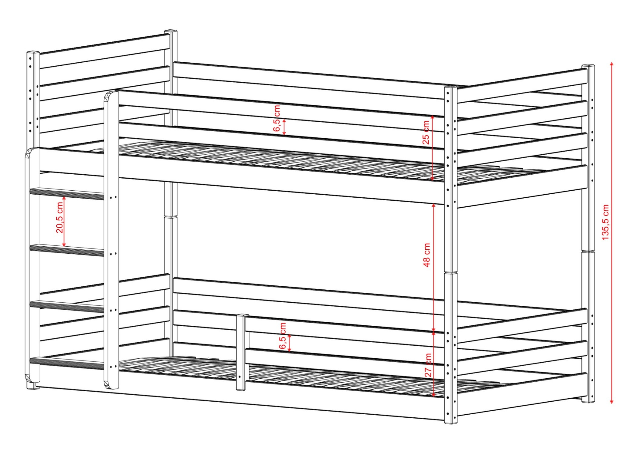 | Výška postele | 135,5 cm |