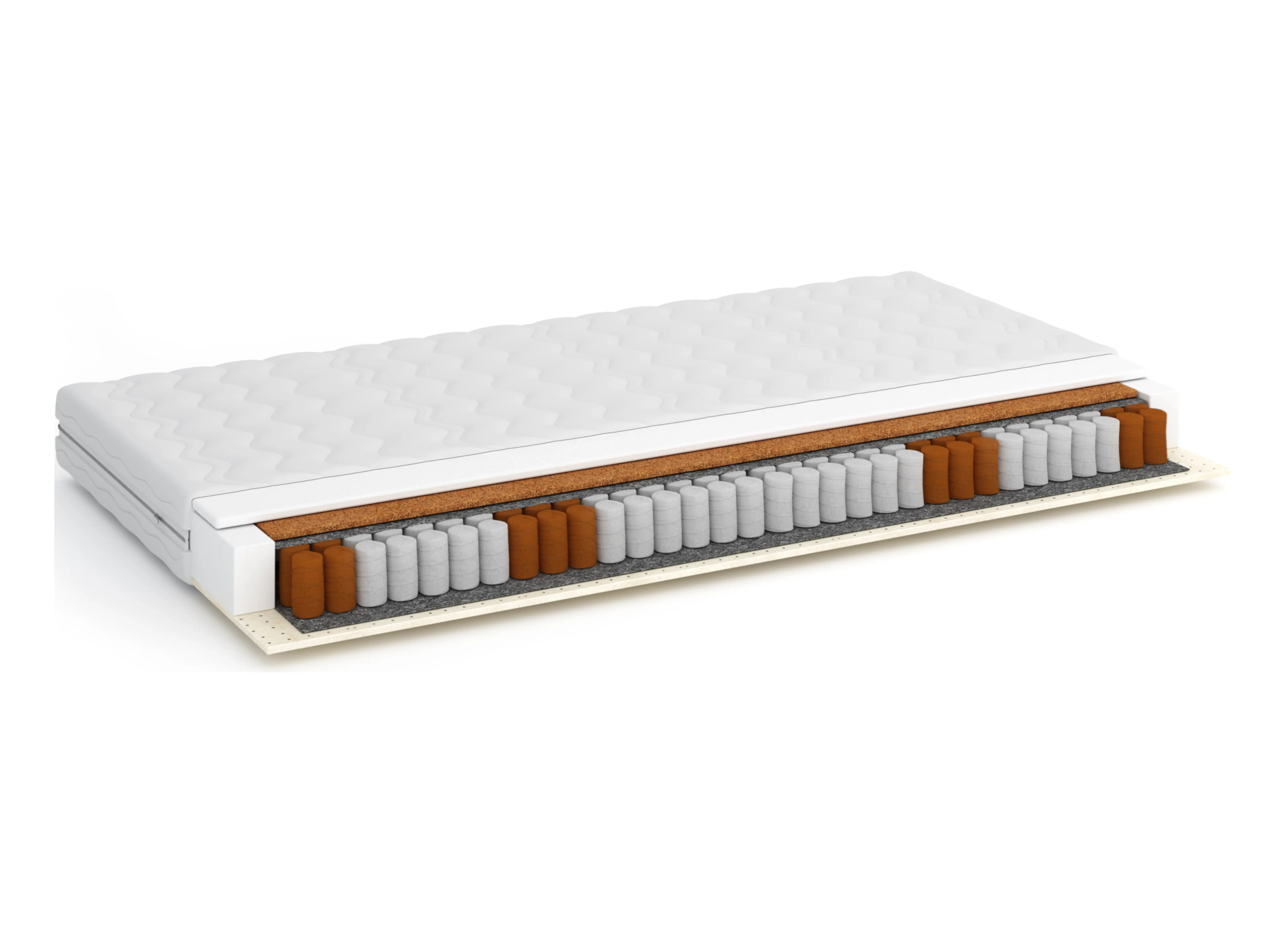 | Náplň | Polyuretanová pěna T25 – 2 cm, kokosová vrstva – 1 cm, plsť, taštičkové pružiny – 12 cm, plsť, polyuretanová pěna T25 – 2 cm, latexová pěna – 2 cm |