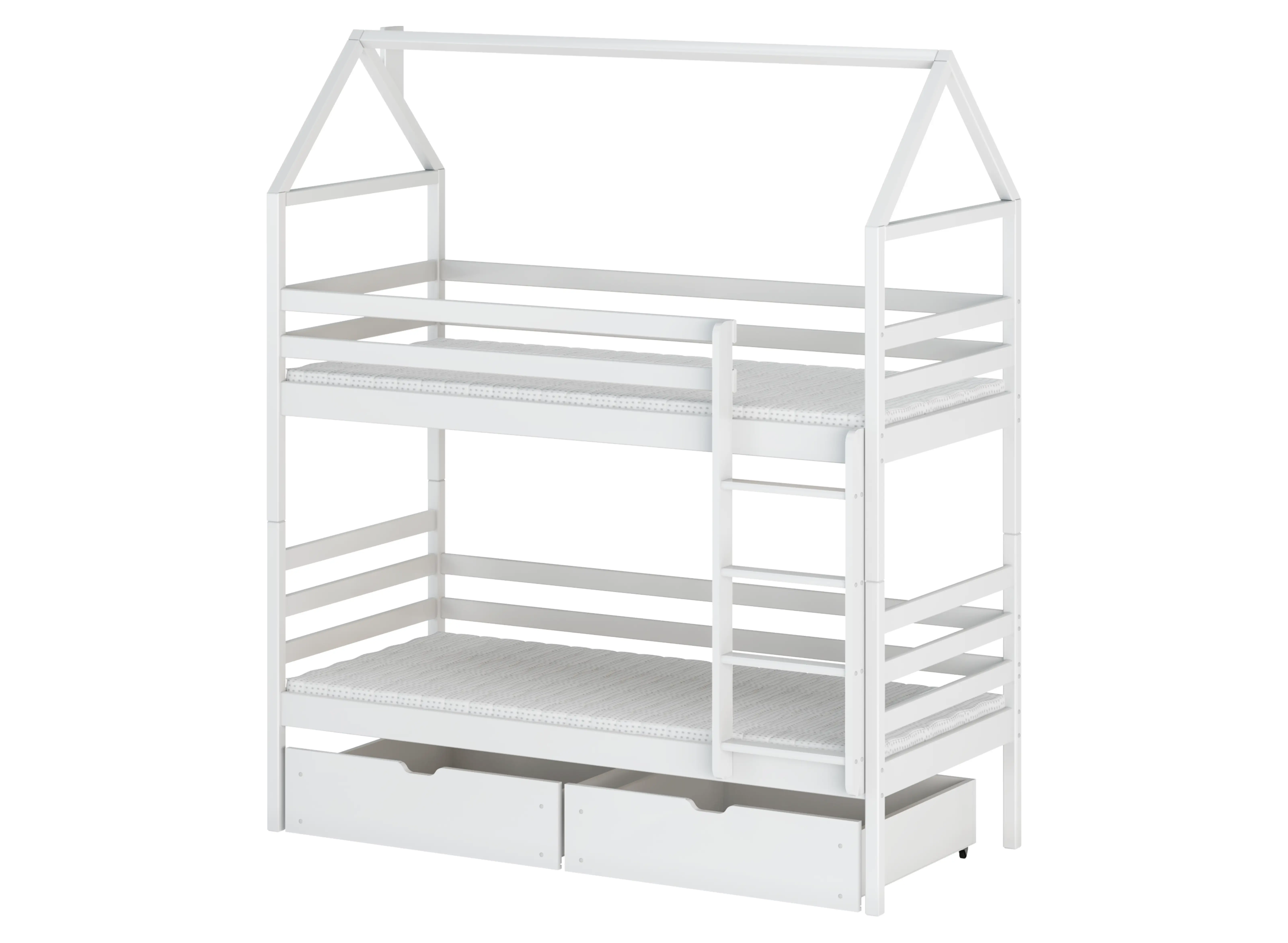 Patrová postel domeček ALEX je vynikající základnou pro děti a útočištěm po celém náročném dni ve škole. Musíme zde zmínit úplnou ochranu, kterou tato konstrukce poskytuje. Žebřík dětské postele ALEX má správně tvarované příčky, které zajišťují bezpečné vcházení a scházení z postele. Všechny desky namontované v rámu zabraňují pádu z postele a zajišťují klid i pro velmi aktivní děti. Dětská postel domeček ALEX je styl, kterému neodoláte, stejně jako žádné dítě. S její pomocí vytvoříte pohádkový prostor, který ovlivní rozvoj, pohodu a kreativitu každého dítěte. Každý okamžik strávený na dětské posteli ALEX s stříškou bude nezapomenutelným momentem. Nenechte se zmást okouzlujícím charakterem patrové postele ALEX. Je to plně funkční a bezpečné spaní pro dva sourozence. Navíc zabudovaná stříška na vrcholu postele může sloužit jako část krytu.