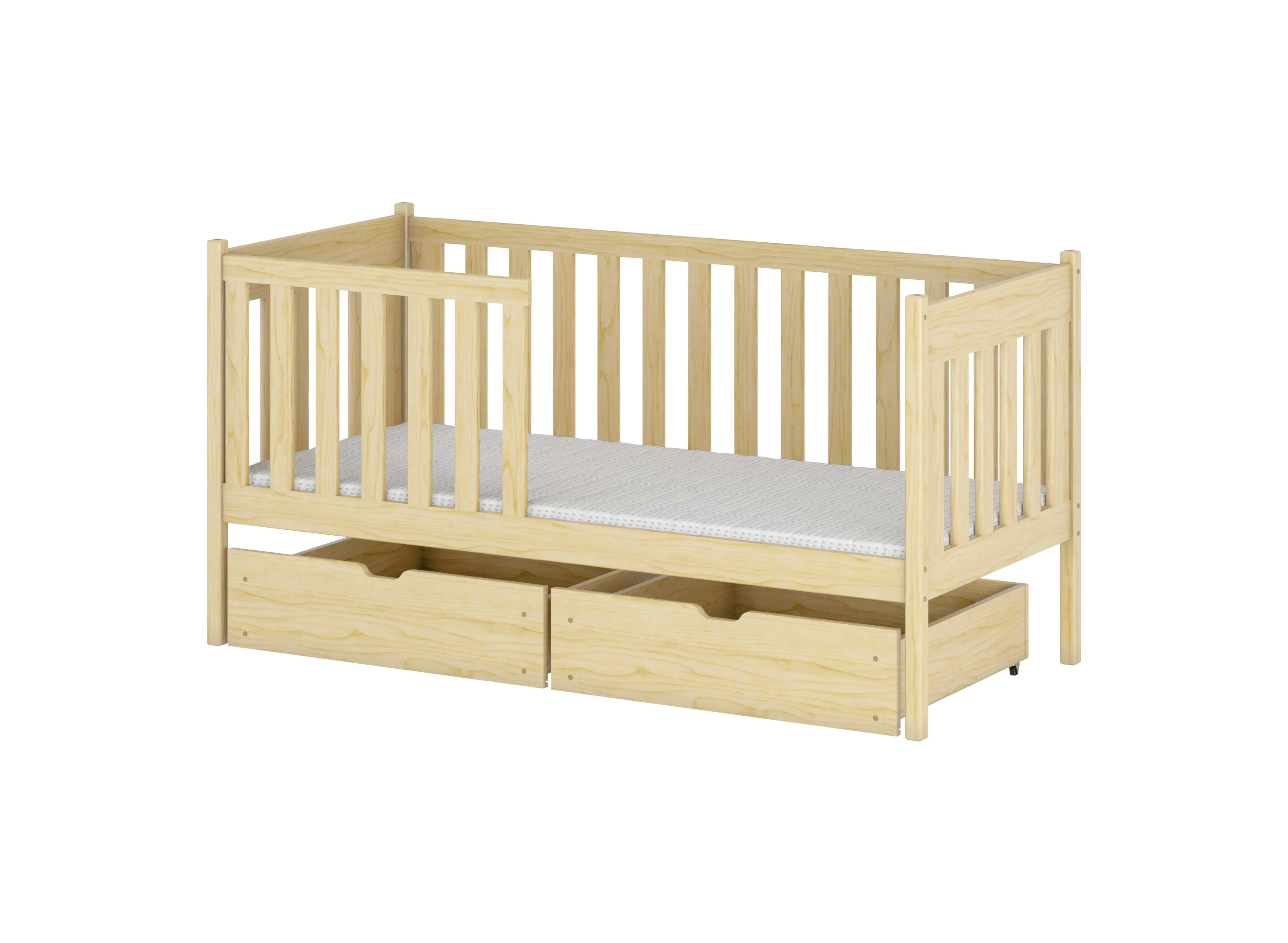 Děti už od nejútlejšího věku rády jsou samostatné, proto dovolte svému dítěti objevovat svět podle jeho vlastních pravidel. Naše dětská postel ALICJA podporuje rozvoj malého člověka. Výška rámu umožňuje vašemu dítěti samostatně vstupovat a vystupovat z postele. To jistě zvýší jeho sebevědomí. Od prvních okamžiků se staráte a pečujete o své dítě. Dovolte, abychom vám alespoň trochu ulevili. Naše dětská postel ALICJA je vyrobena z borového dřeva, které je odolné vůči mechanickému poškození. Nezapomínáme ani na barvy. Víme, že děti v raném věku poznávají svět tím, že berou různé předměty do úst. Proto je naše dětská postel ALICJA natřena barvami, které neohrožují zdraví vašeho dítěte.