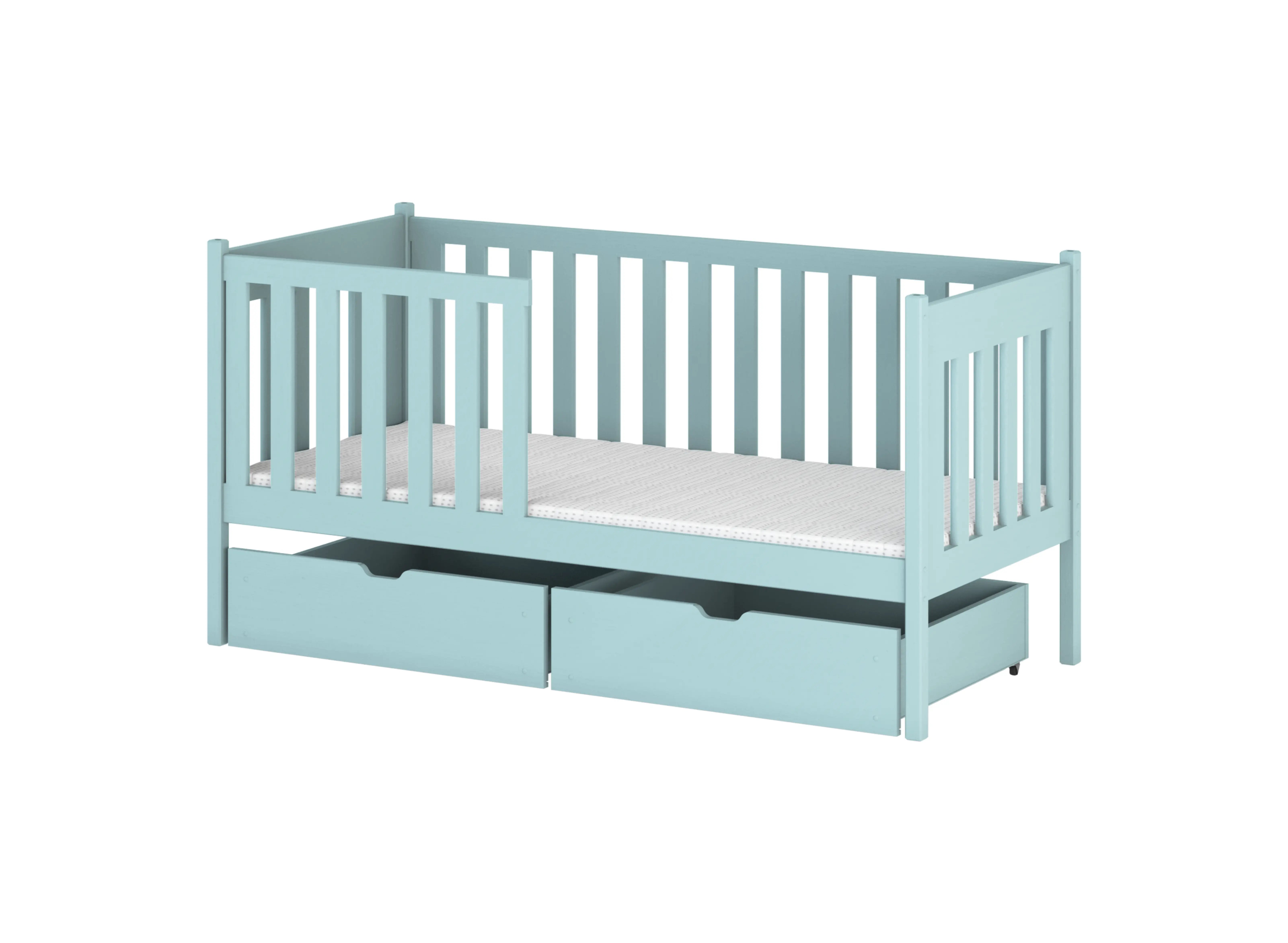 Děti už od nejútlejšího věku rády jsou samostatné, proto dovolte svému dítěti objevovat svět podle jeho vlastních pravidel. Naše dětská postel ALICJA podporuje rozvoj malého člověka. Výška rámu umožňuje vašemu dítěti samostatně vstupovat a vystupovat z postele. To jistě zvýší jeho sebevědomí. Od prvních okamžiků se staráte a pečujete o své dítě. Dovolte, abychom vám alespoň trochu ulevili. Naše dětská postel ALICJA je vyrobena z borového dřeva, které je odolné vůči mechanickému poškození. Nezapomínáme ani na barvy. Víme, že děti v raném věku poznávají svět tím, že berou různé předměty do úst. Proto je naše dětská postel ALICJA natřena barvami, které neohrožují zdraví vašeho dítěte.