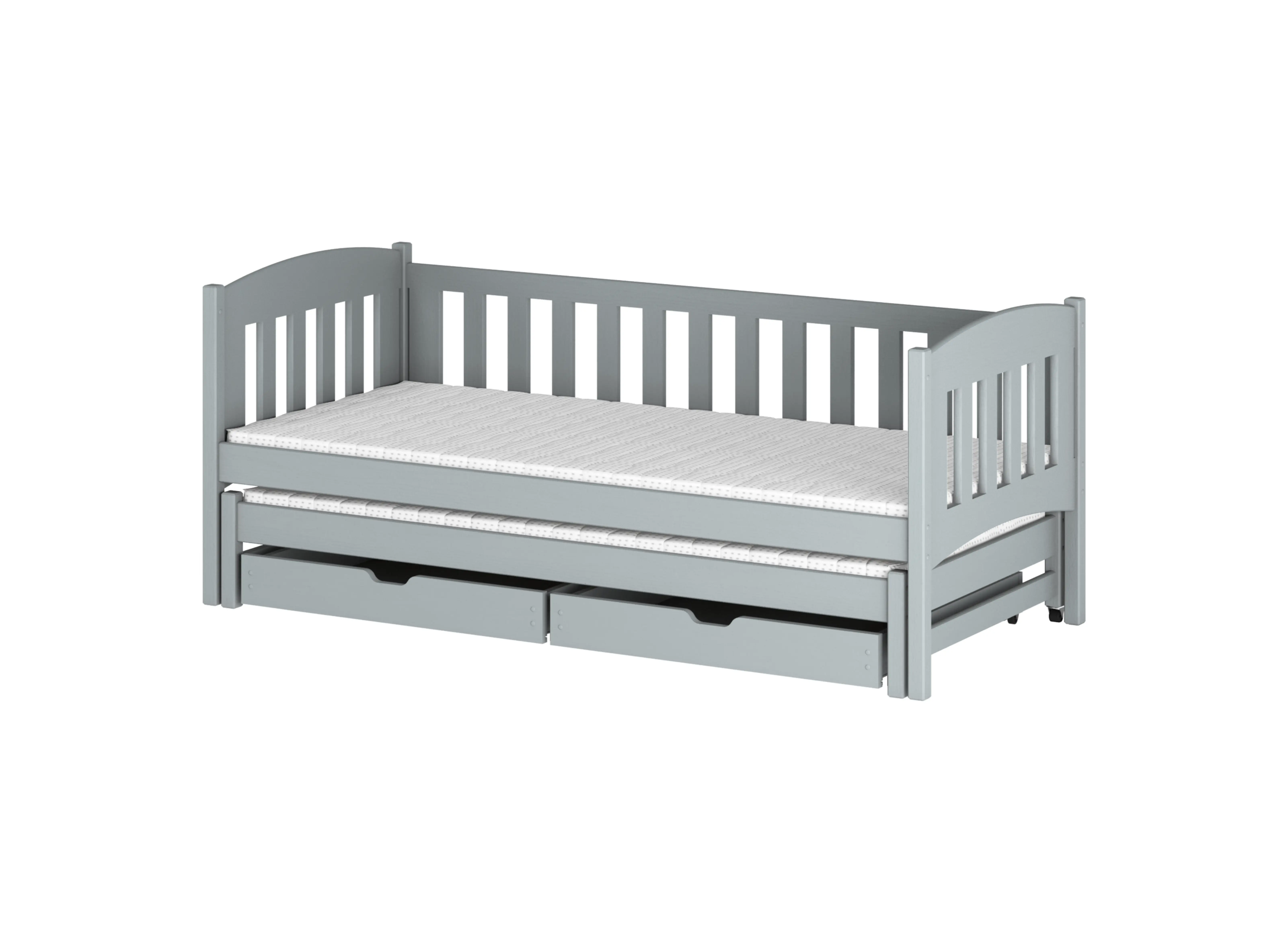 Nízká postel s výsuvem AMELKA 90x200 v šedé barvě – ideální pro dvě děti