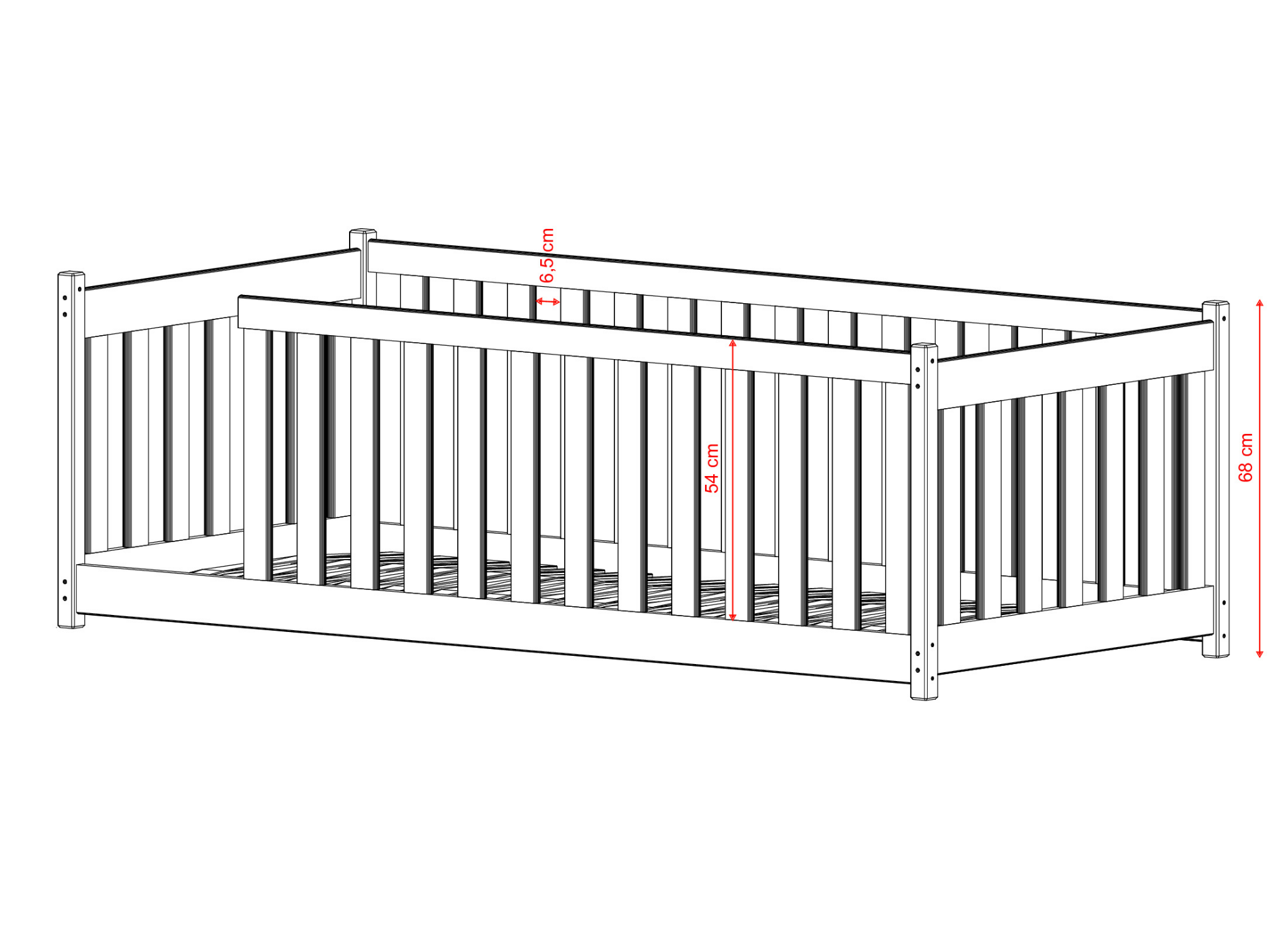 - cení si bezpečnosti Jeho dřevěné zábradlí chrání dítě během spánku a her.