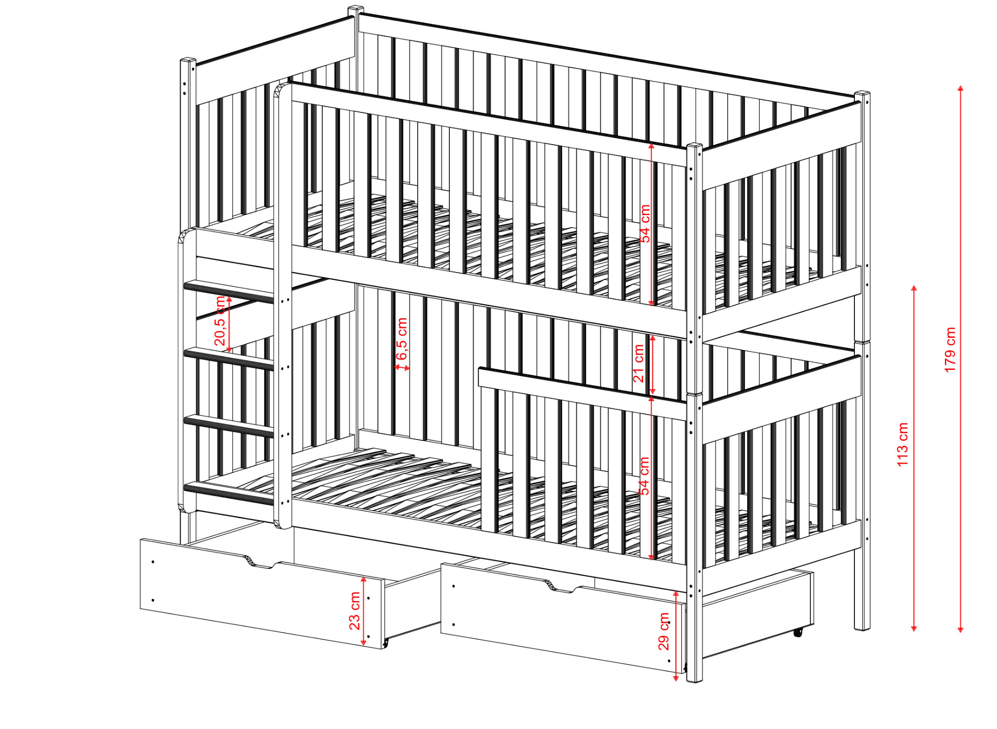 Najít dostatečné množství místa na hračky a ložní prádlo je výzva v každém domě. Přistup k tomu chytře a vyber takovou dětskou postel, která pojme sourozence a zároveň poskytne prostorné zásuvky na poklady. Naše patrová postel DAWID umožňuje konfiguraci, včetně volby, zda bude pod spodním matracem místo na zásuvky. Přizpůsob si další parametry (vestavěnou nebo odnímatelnou zábranu a její velikost) a objednej ještě dnes dětskou postel DAWID, kterou si tvoje děti zamilují!