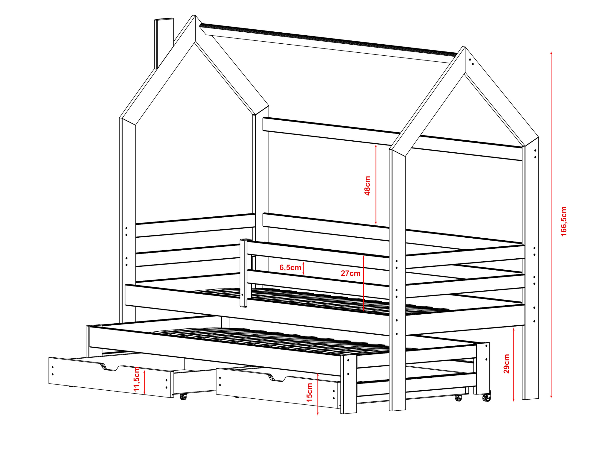 Plánování rekonstrukce v dětském pokoji je jistě důležité, aby prošel spektakulární proměnou. Dosavadní nábytek není jen opotřebovaný, ale už si nejste jisti, zda je vůbec bezpečný pro vaše dítě. S Lano Meble můžete spát klidně! Dětská postel domek DANEK nejen promění pokoj pro chlapce nebo dívku, ale zaručuje nejvyšší kvalitu a bezpečný spánek. Na nás se můžete spolehnout! Jaká je nejdůležitější část dětské postele domek DANEK? Bezpochyby je to rošt. Díky správné podpoře se vaše dítě vyspí a ráno vstane odpočaté. Rošt pro dětskou postel DANEK je vyroben z březových lamel FLEX, takže se skvěle přizpůsobí každému typu matrace. V tak důležitých věcech se nevyplatí dělat kompromisy!