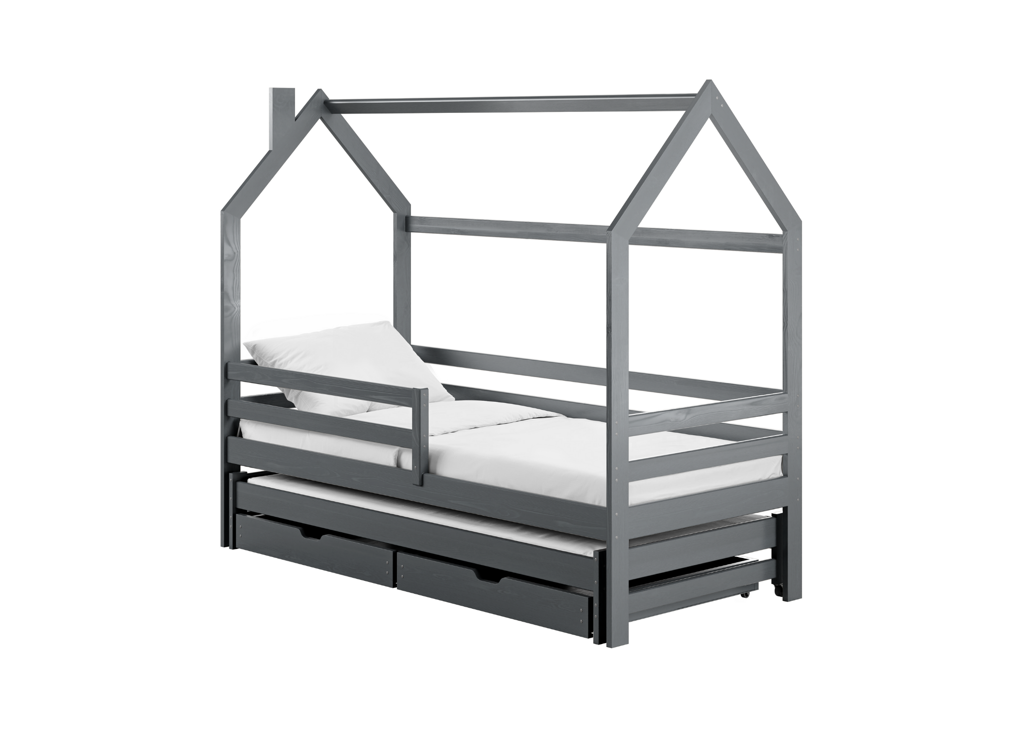 Děti si oblíbí grafitové dětské lůžko domek DANEK už od první noci