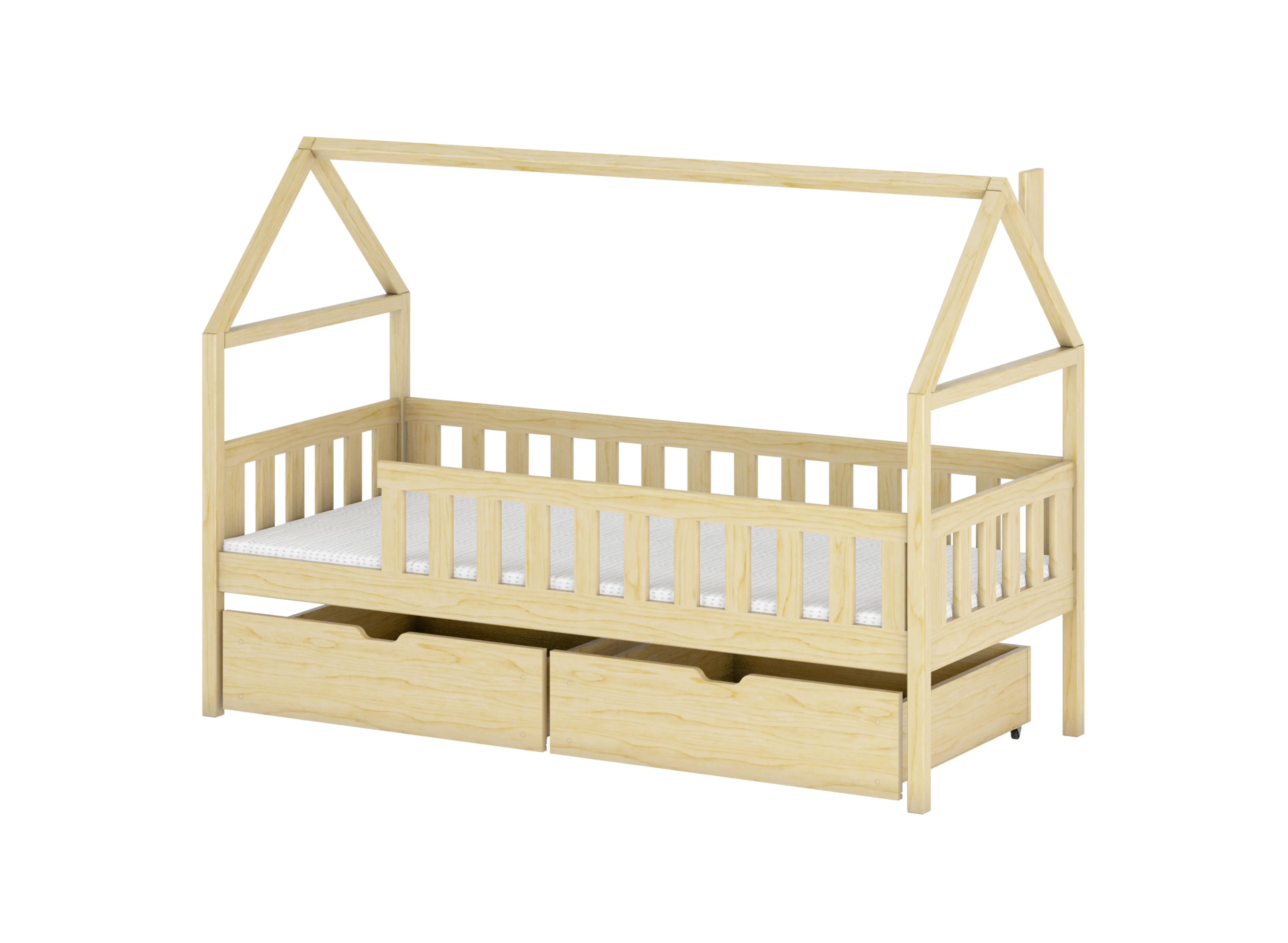 Všechny naše produkty splňují nejvyšší bezpečnostní standardy určené pro dětský nábytek. K výrobě tohoto modelu jsme použili borovicové dřevo, které je nejen trvanlivé, ale také pochází z odpovědného lesního hospodářství. Tím pádem má postel-domek DOMI ekologický charakter. Můžeme ji natřít jakoukoliv barvou, kterou si vaše dítě přeje, a to pomocí netoxických laků. V dětském pokoji vždy chybí úložný prostor – ať už na hračky, zimní oblečení nebo náhradní ložní prádlo. Tento model dětského nábytku je vybaven dvěma výsuvnými zásuvkami o velké kapacitě, které se určitě budou hodit.