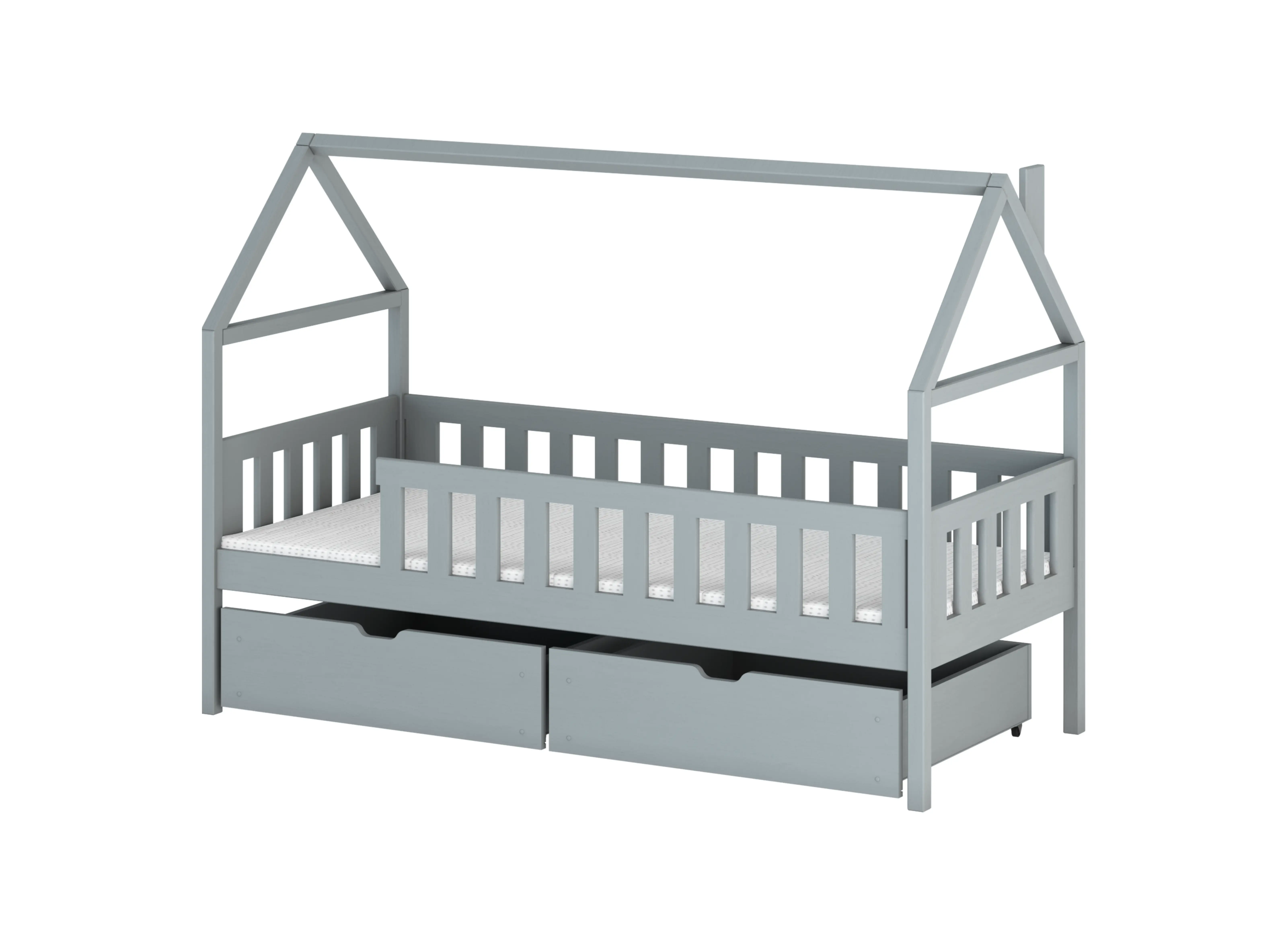 Všechny naše produkty splňují nejvyšší bezpečnostní standardy určené pro dětský nábytek. K výrobě tohoto modelu jsme použili borovicové dřevo, které je nejen trvanlivé, ale také pochází z odpovědného lesního hospodářství. Tím pádem má postel-domek DOMI ekologický charakter. Můžeme ji natřít jakoukoliv barvou, kterou si vaše dítě přeje, a to pomocí netoxických laků. V dětském pokoji vždy chybí úložný prostor – ať už na hračky, zimní oblečení nebo náhradní ložní prádlo. Tento model dětského nábytku je vybaven dvěma výsuvnými zásuvkami o velké kapacitě, které se určitě budou hodit.