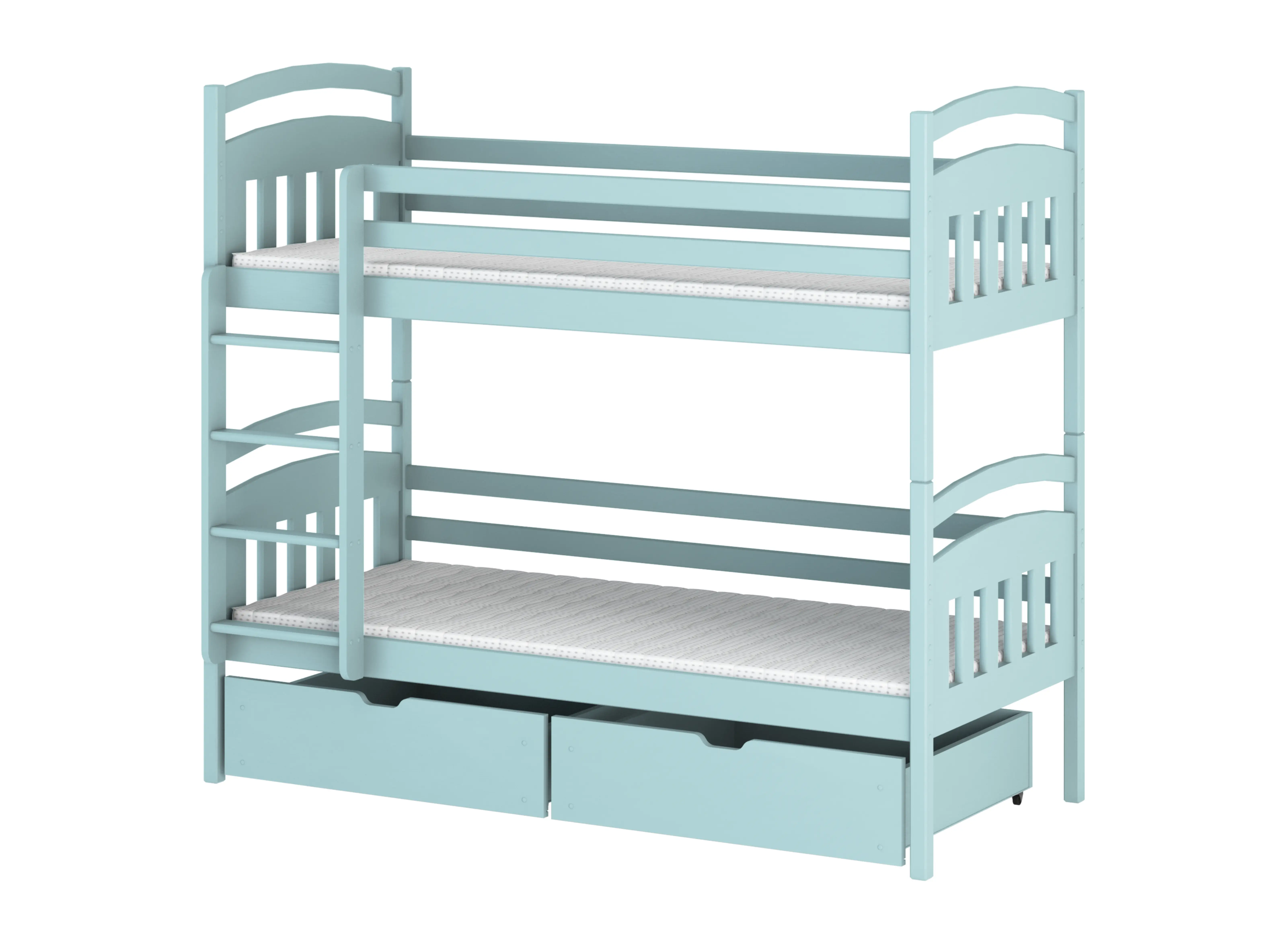 Výjimečná modrá patrová postel GABI 80x190 z borovicového dřeva