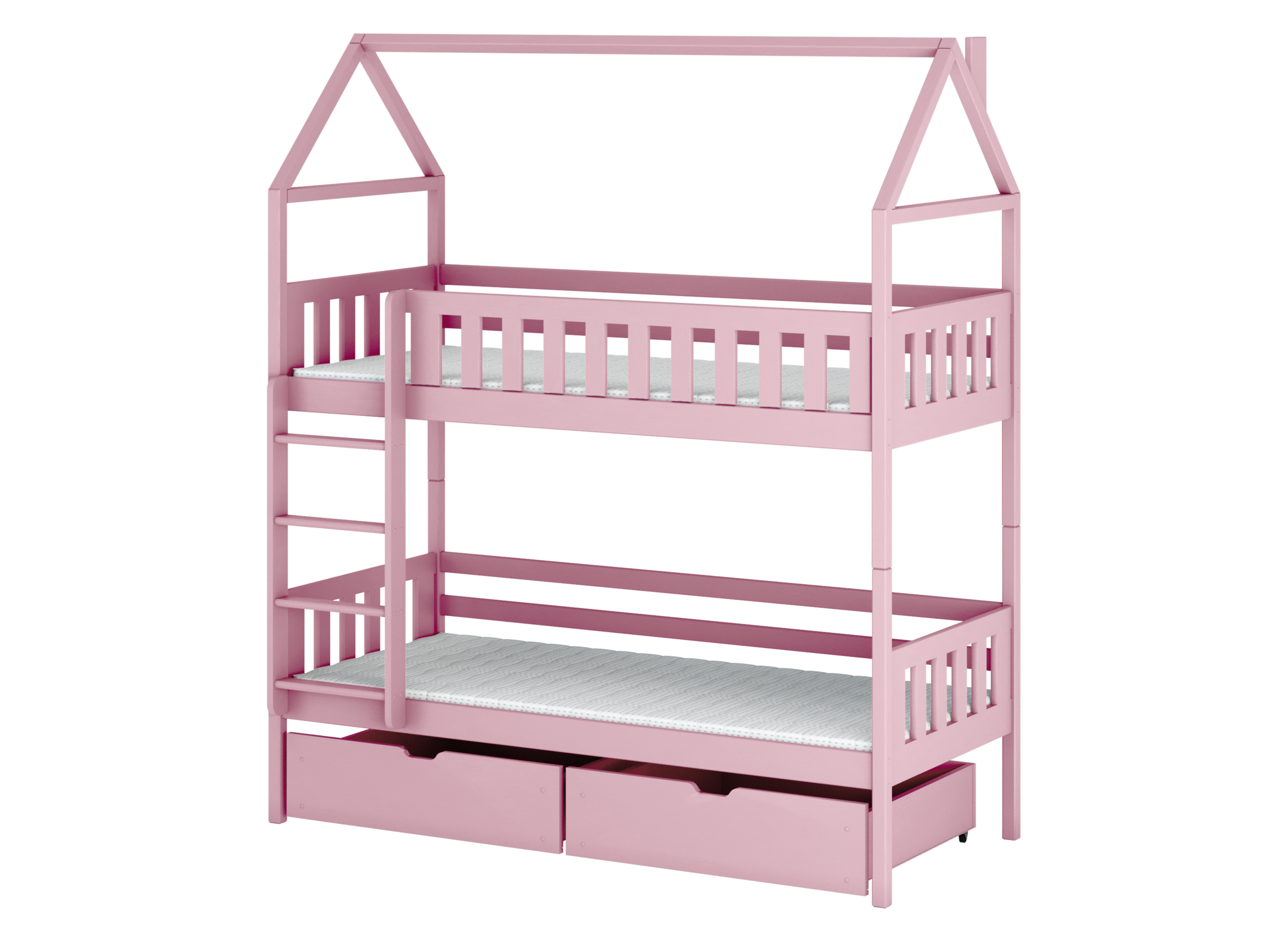 Pevné a praktické spaní pro dítě – růžová patrová postel domek GAJA