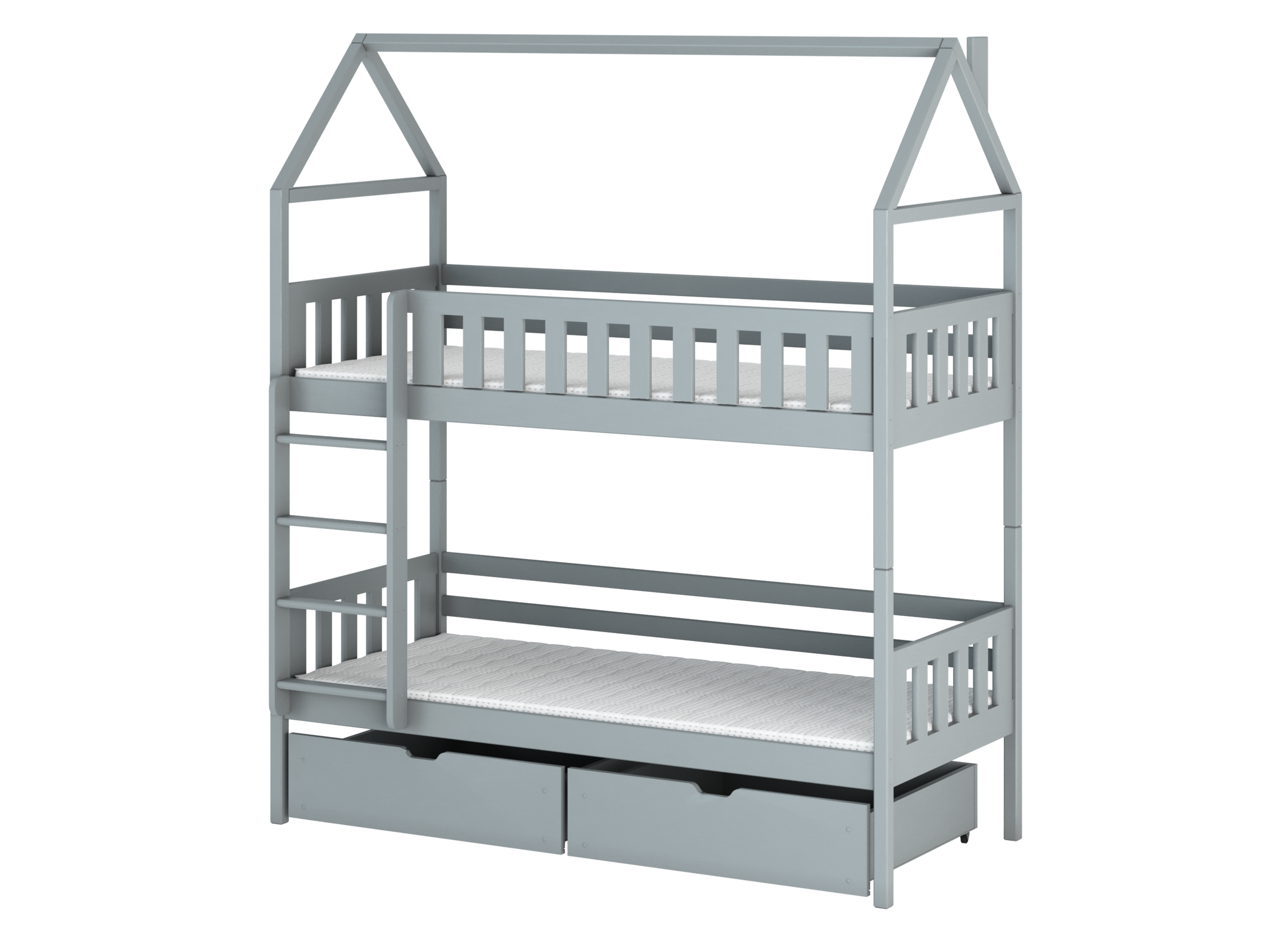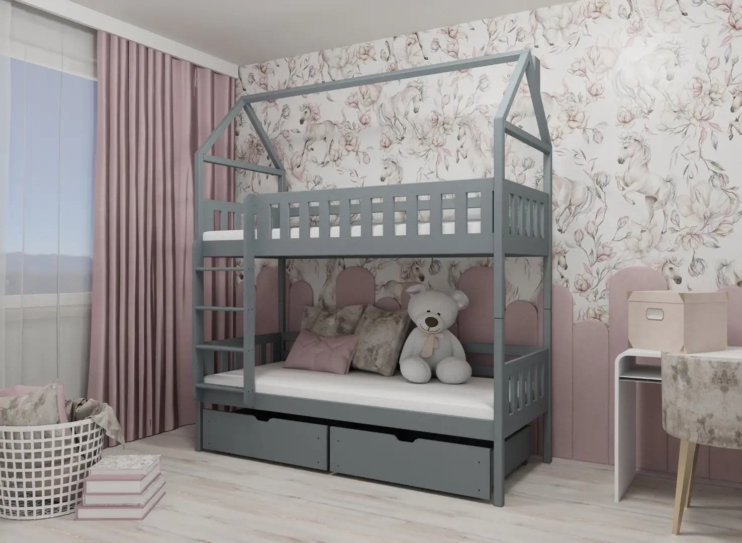 Patrová postel domek GAJA 90x200 v barvě popel – moderní vzhled, nadčasová praktičnost