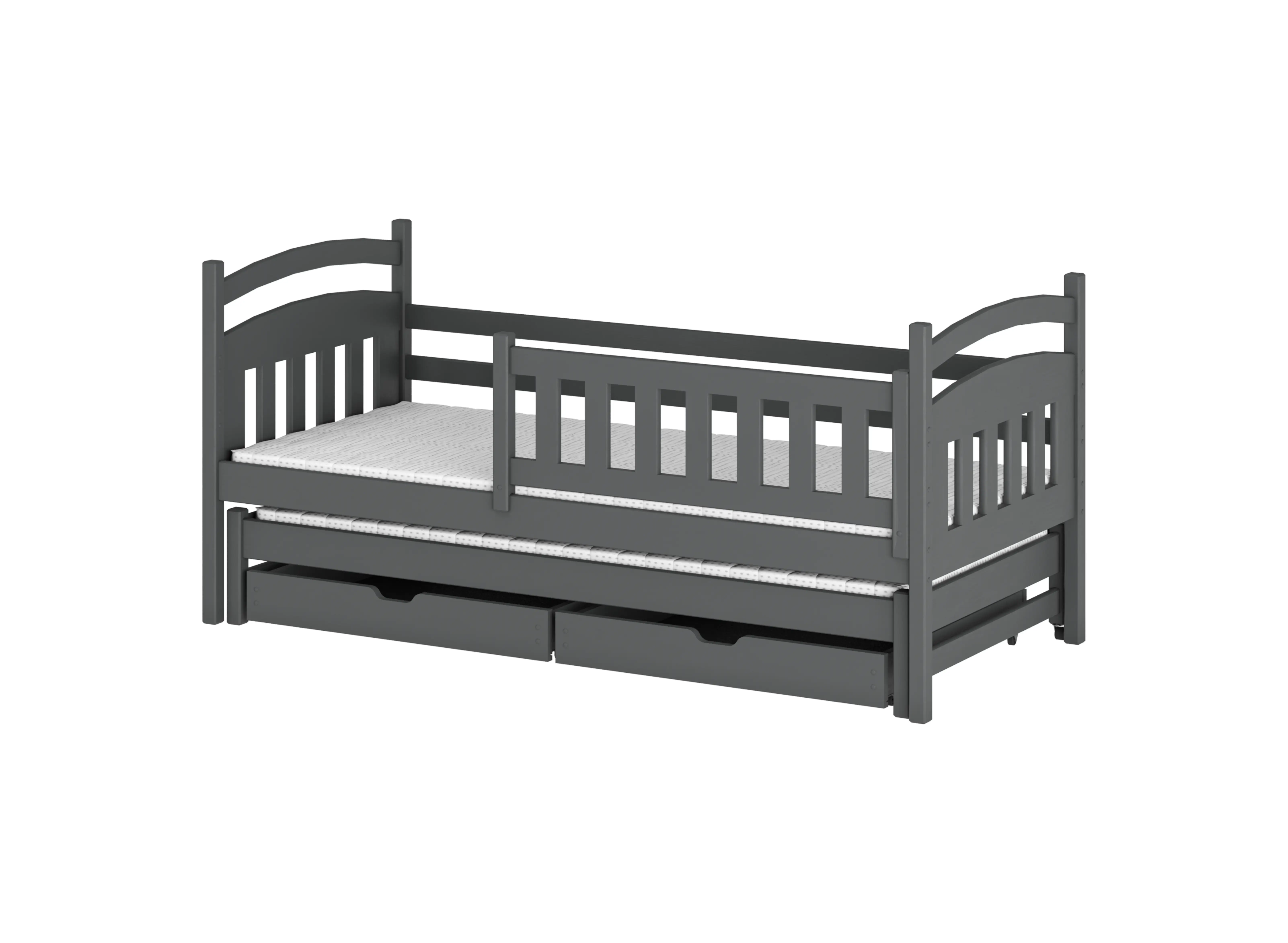 Přizpůsobte grafitovou dětskou postel GALAXY svým osobním preferencím – rozhodněte se pro šuplíky
