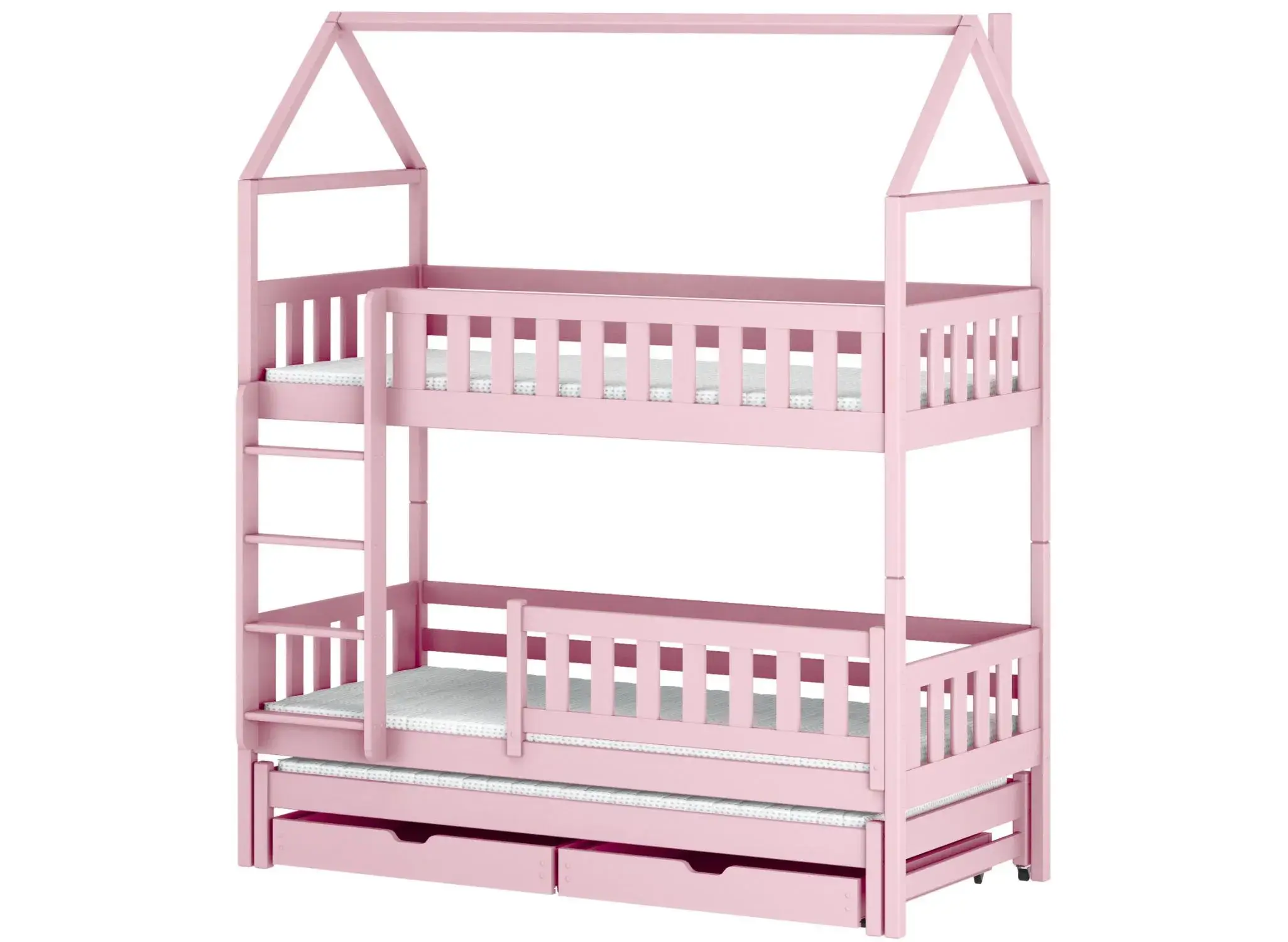 Praktické zásuvky na drobnosti – růžová patrová postel domek IGA