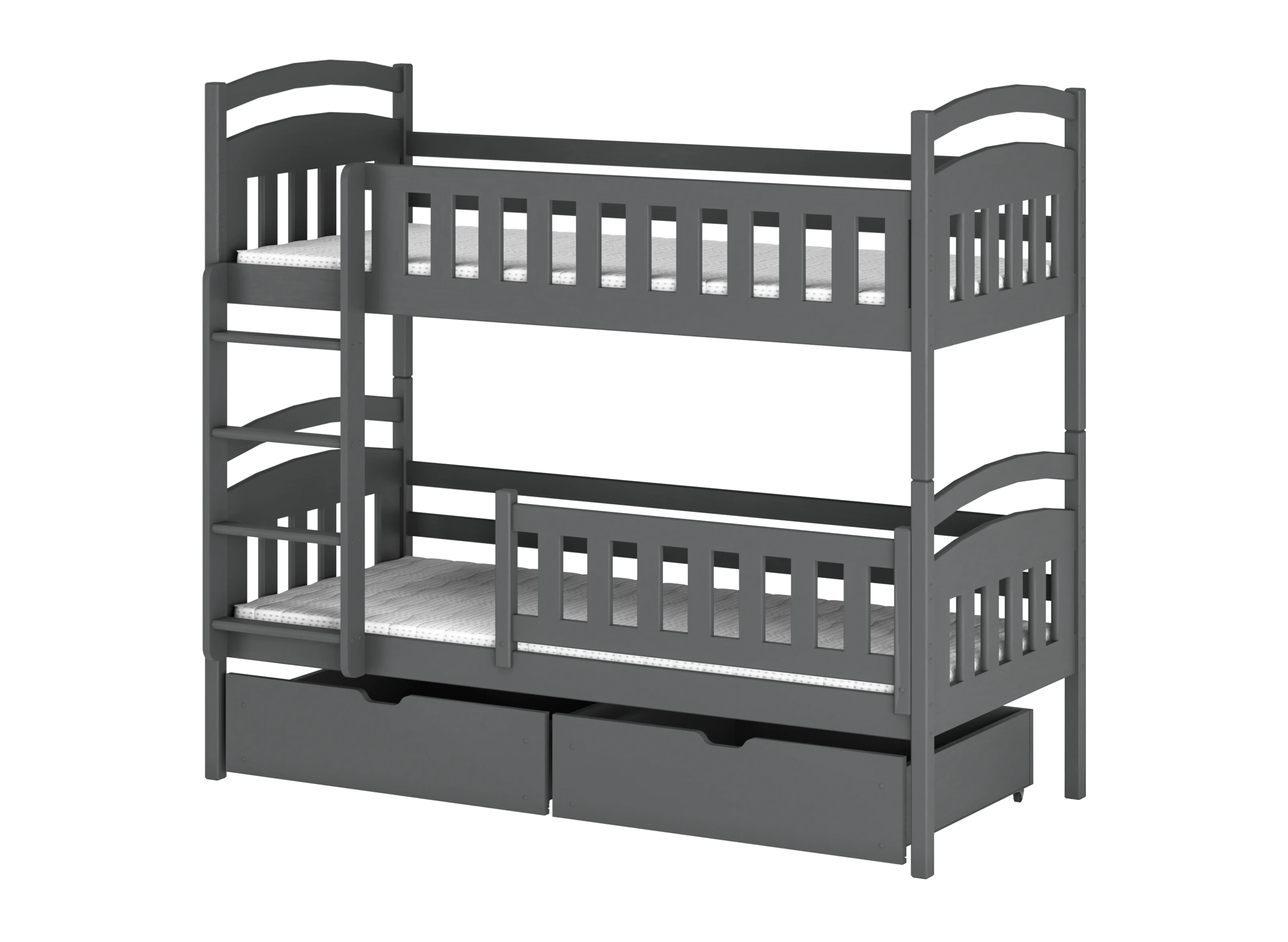 Grafitová patrová postel IGNAŚ 90x200 – funkční, vysouvací zásuvky