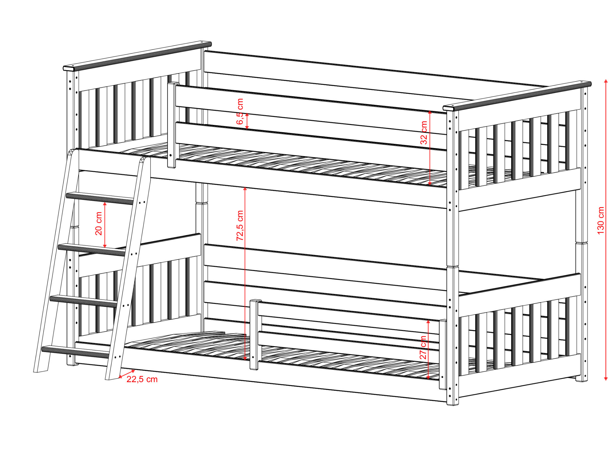 Bílá patrová postel KEVIN – spolehlivá, pevná a pečlivě zpracovaná