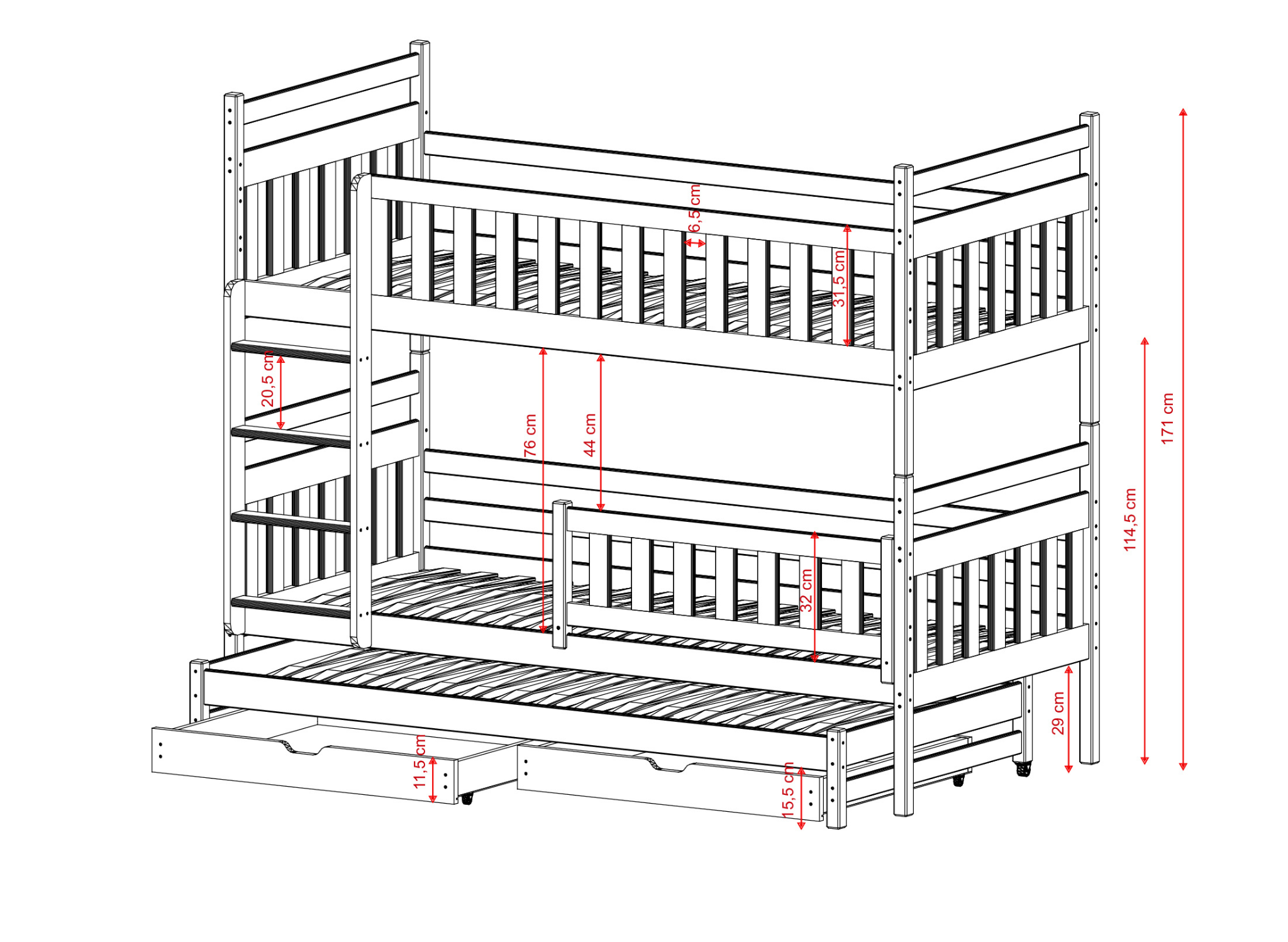 | Výška postele | 171 cm |