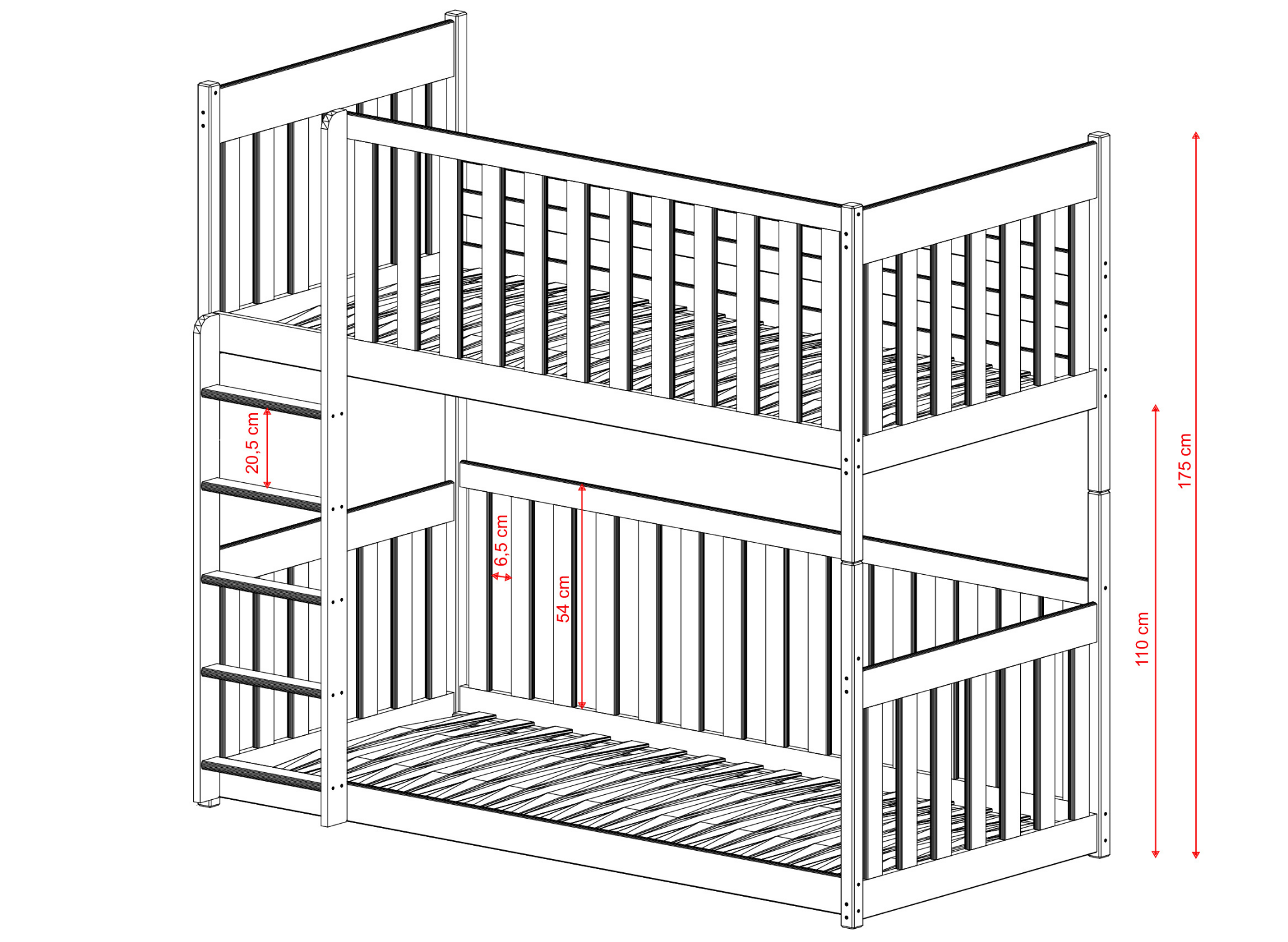 Navrhování dětského pokoje je pro mnoho rodičů jednou z největších výzev, ale patrová postel KONRAD vám tento úkol významně usnadní. Jedná se o postel typu ohrádka, která se hodí pro menší děti. Její klasická konstrukce dokonale zapadne do všech typů interiérů. Rám patrové postele KONRAD je zcela vyroben z borovicového dřeva, jehož trvanlivost zvyšuje antialergická vodní barva. V Lano Meble dbáme na bezpečnost vašich dětí, proto jsou všechny naše patrové postele KONRAD vyráběny s ohledem na nejvyšší standardy.