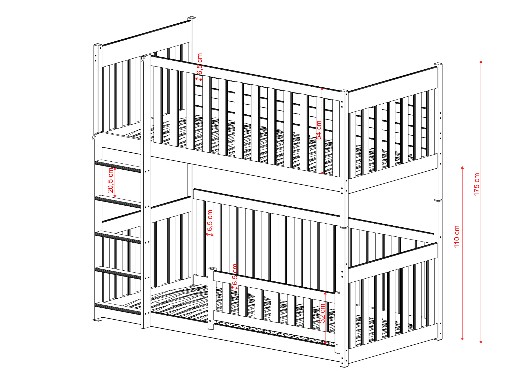 Navrhování dětského pokoje je pro mnoho rodičů jednou z největších výzev, ale patrová postel KONRAD vám tento úkol významně usnadní. Jedná se o postel typu ohrádka, která se hodí pro menší děti. Její klasická konstrukce dokonale zapadne do všech typů interiérů. Rám patrové postele KONRAD je zcela vyroben z borovicového dřeva, jehož trvanlivost zvyšuje antialergická vodní barva. V Lano Meble dbáme na bezpečnost vašich dětí, proto jsou všechny naše patrové postele KONRAD vyráběny s ohledem na nejvyšší standardy.