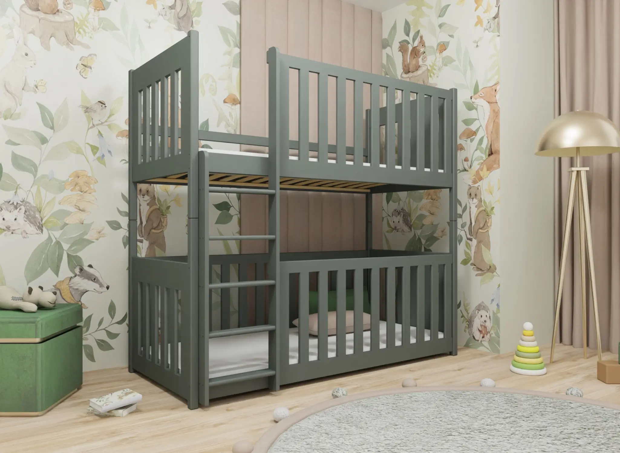 Dřevěná grafitová patrová postel KONRAD, která dětem poskytne klid a odpočinek