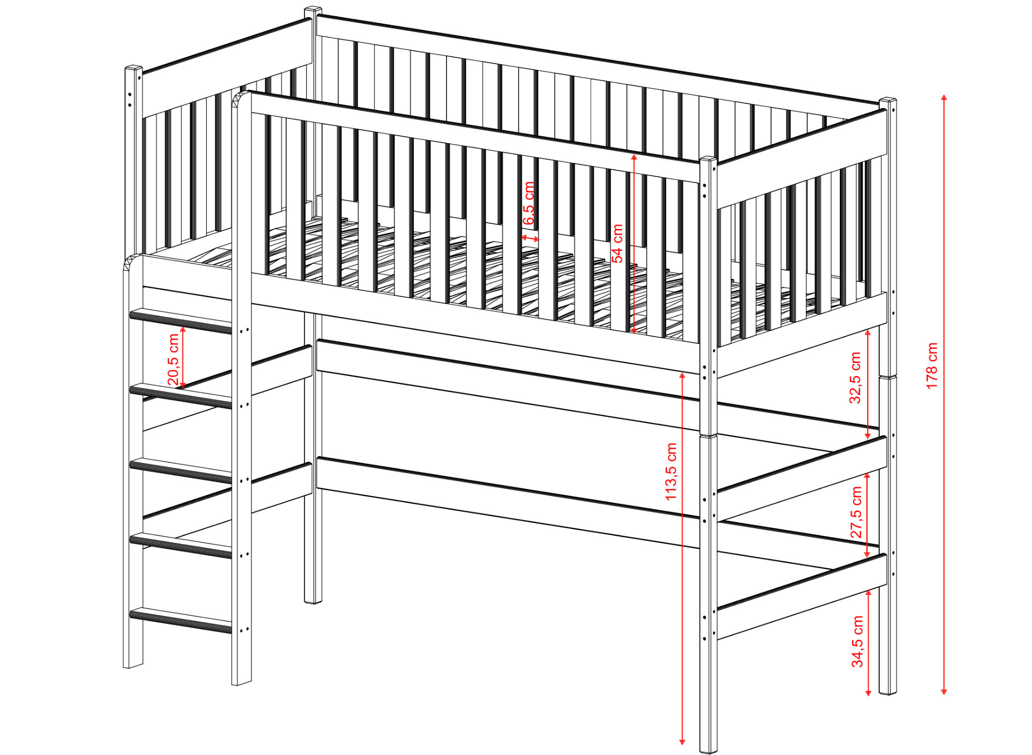 Palanda LAURA pro jednolůžko je unikátní řešení, které zpestří výzdobu dětského pokoje. Design, který děti milují, však není jedinou výhodou tohoto kusu nábytku. Zjistěte o něm více! Mezanin je řešení šetřící místo, díky čemuž je ideální do malého dětského pokoje. Spodní část si můžete uspořádat mimořádně prakticky – je to ideální místo pro uspořádání koutku na hračky, uspořádání měkkých pufů pro relaxaci nebo vytvoření domácího úložného prostoru, který pomůže udržet pokoj v pořádku. Okraj dětské postele je zakončen vysokým zábradlím, které zabraňuje pádům. Bezpečný vstup zajišťuje ergonomický žebřík s pohodlnými a stabilními schůdky.