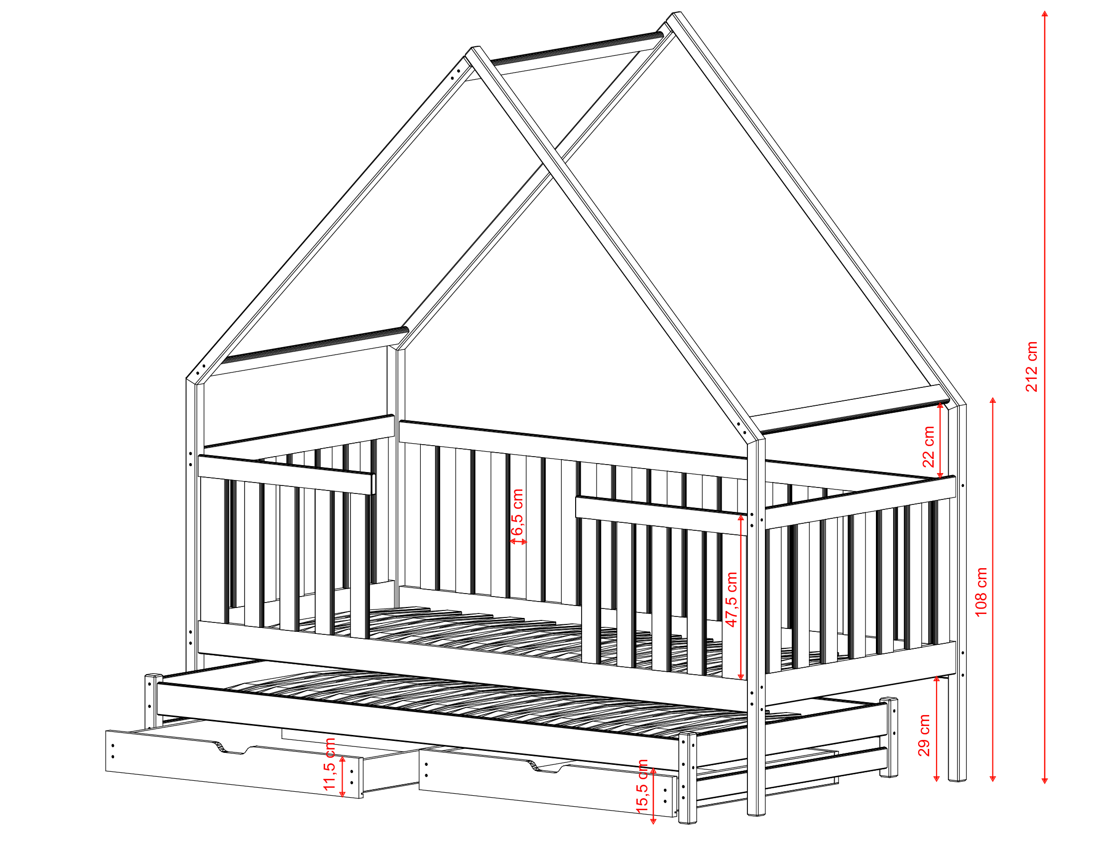 Dětská postel typu teepee, nebo snad postel se stříškou? Jakou postel pro sourozence vybrat? Tyto a podobné otázky vám jistě přicházejí na mysl. Uvědomujeme si, že výběr konkrétního modelu může být náročný. Ve Lano Meble však dbáme na každý detail a naším prioritním cílem je bezpečnost a spokojenost těch nejmenších i jejich rodičů. Dětská postel MAGIC ve tvaru domečku nás přenáší do pohádkového světa her. Hodí se jak jako postel pro holčičku, tak i jako postel pro chlapečka. Dětskou postel MAGIC můžete ozdobit podle svého vkusu, což poskytuje prostor pro kreativitu a fantazii. Borovicová postel domeček je ideálním místem pro spánek, které si vaše dítě zamiluje na první pohled. Pokud je večer těžké přimět dítě jít spát, patrová postel ve tvaru domečku MAGIC může tento problém vyřešit. Ve Lano Meble se staráme o harmonický rozvoj vašeho dítěte, s důrazem na kvalitní spánek. Patrová postel z borového dřeva vybavená kvalitní matrací je skvělým místem pro noční odpočinek i pro odpolední siestu.