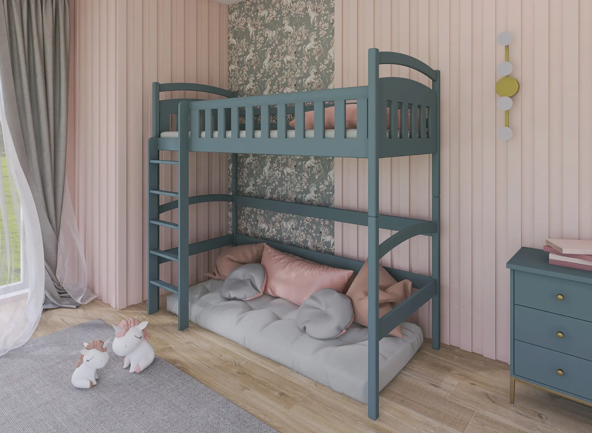 Zamilujte se do popelavě zbarvené mezipatrové postele – MIA oživí interiér dětského pokoje.