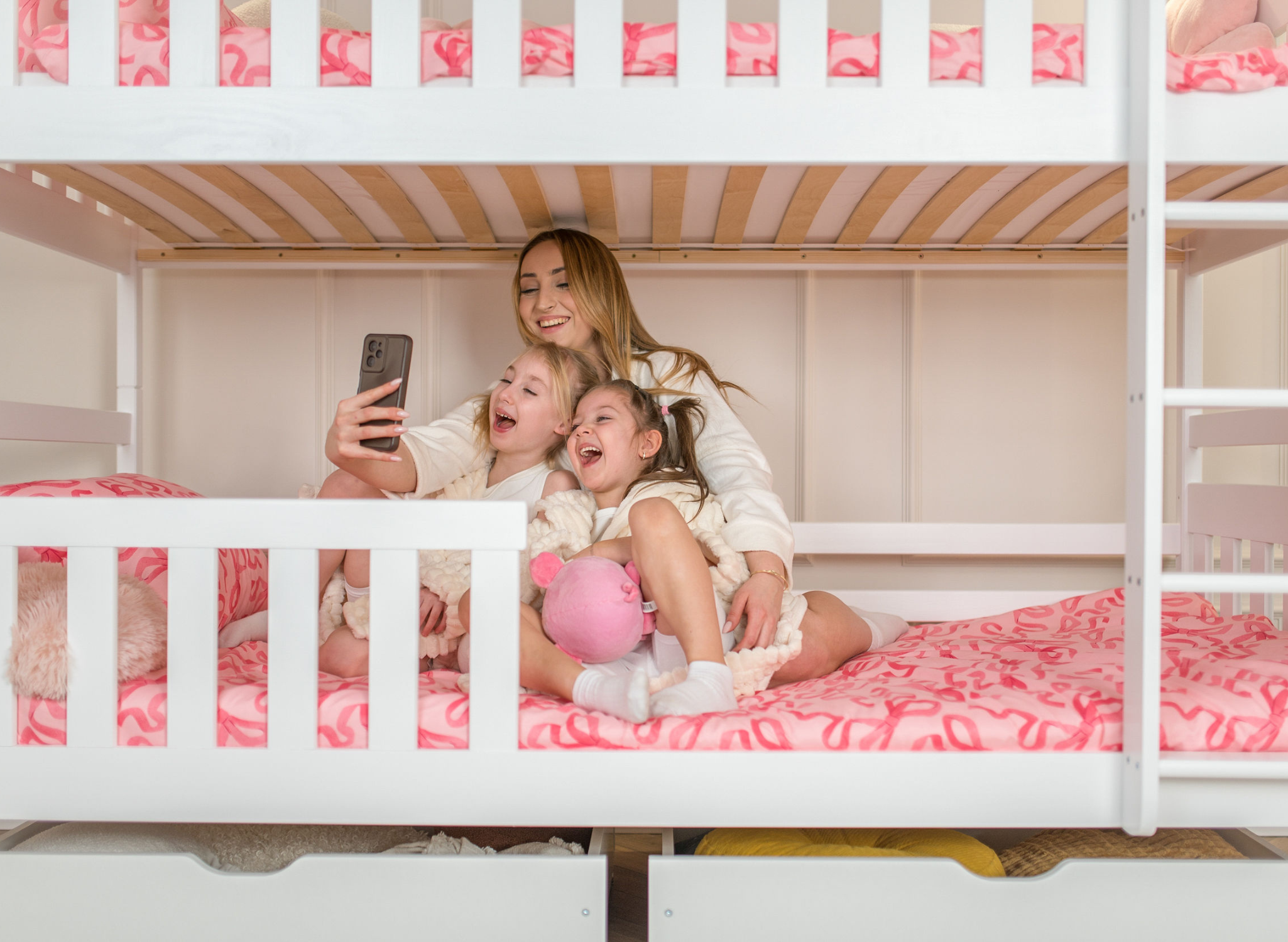 Přizpůsobíte ji i nejbláznivějšímu dětskému pokoji! Bílá patrová postel MONIKA