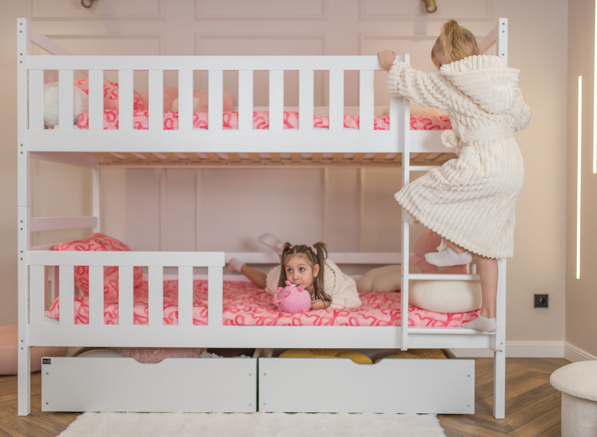 Design, který si rodiče a děti zamilovali – bílá patrová postel MONIKA