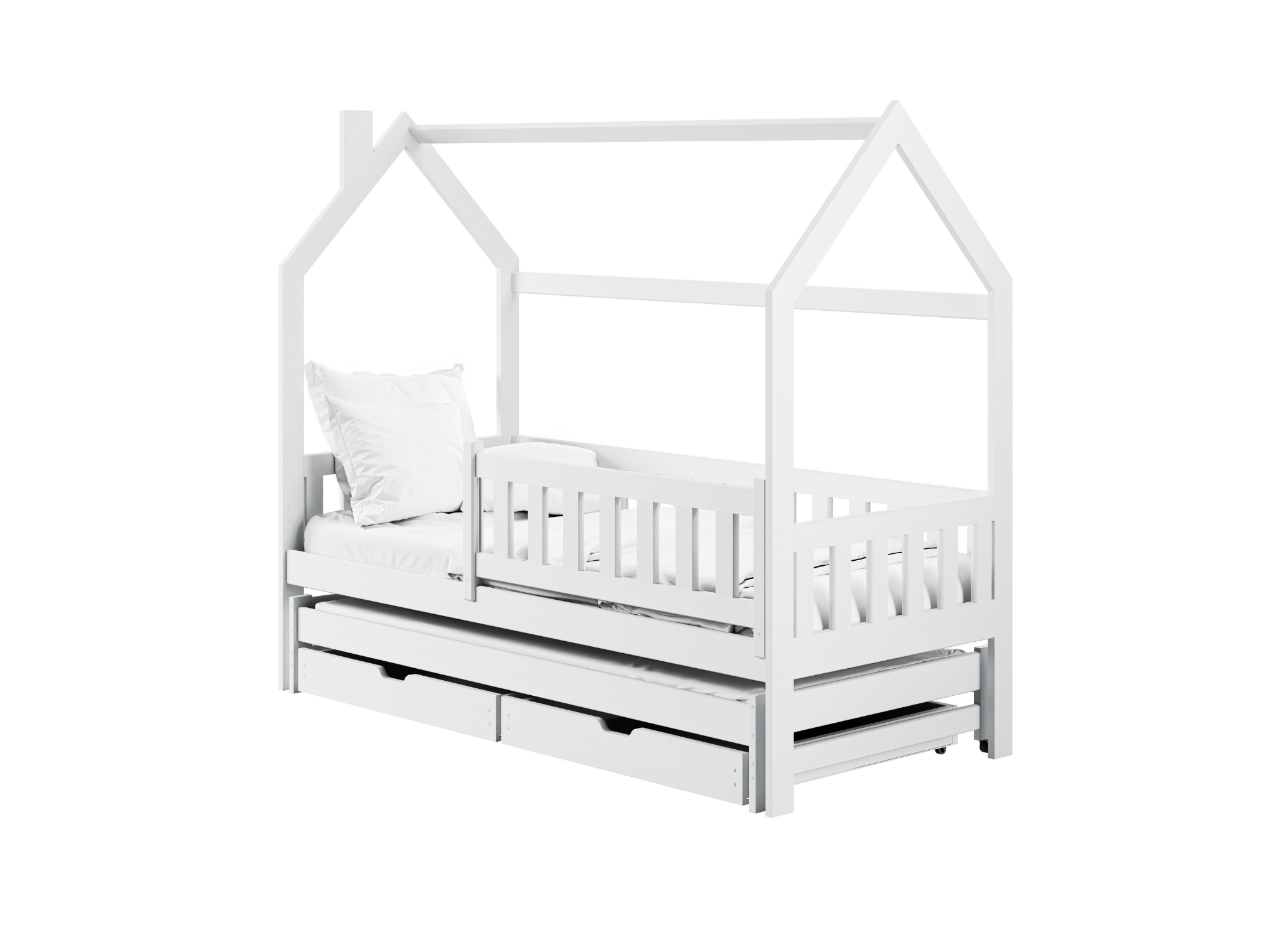 Dětská postel domeček MONKEY je návrh, který nadchne všechny malé děti. Je to jedinečný nábytek, který nejen že zaujme svým roztomilým vzhledem ve tvaru domečku, ale také funkčností a komfortem, který nabízí. Dětská postel domeček MONKEY má pro každého něco. Je vyrobena z pevných borovicových desek, které jsou navíc chráněny neutrálními laky, které jsou bezpečné pro zdraví. Dřevo je také materiál s antistatickými vlastnostmi, což jistě ocení alergici. Styl dětské postele domeček MONKEY díky jednoduchému tvaru a klasickým liniím zapadne do každého dětského pokoje. Je třeba zdůraznit, že dětská postel domeček MONKEY není jen krásný design v pohádkovém stylu. Je to také velmi praktický nábytek. Vysouvací část umožňuje ušetřit spoustu místa během dne, jednoduše zasunutím druhého lůžka. A to není vše. Dětská postel domeček MONKEY má také praktické, prostorné zásuvky, které můžete použít k uložení hraček, ložního prádla, oblečení nebo čehokoli, co potřebujete. Jaká úspora místa!