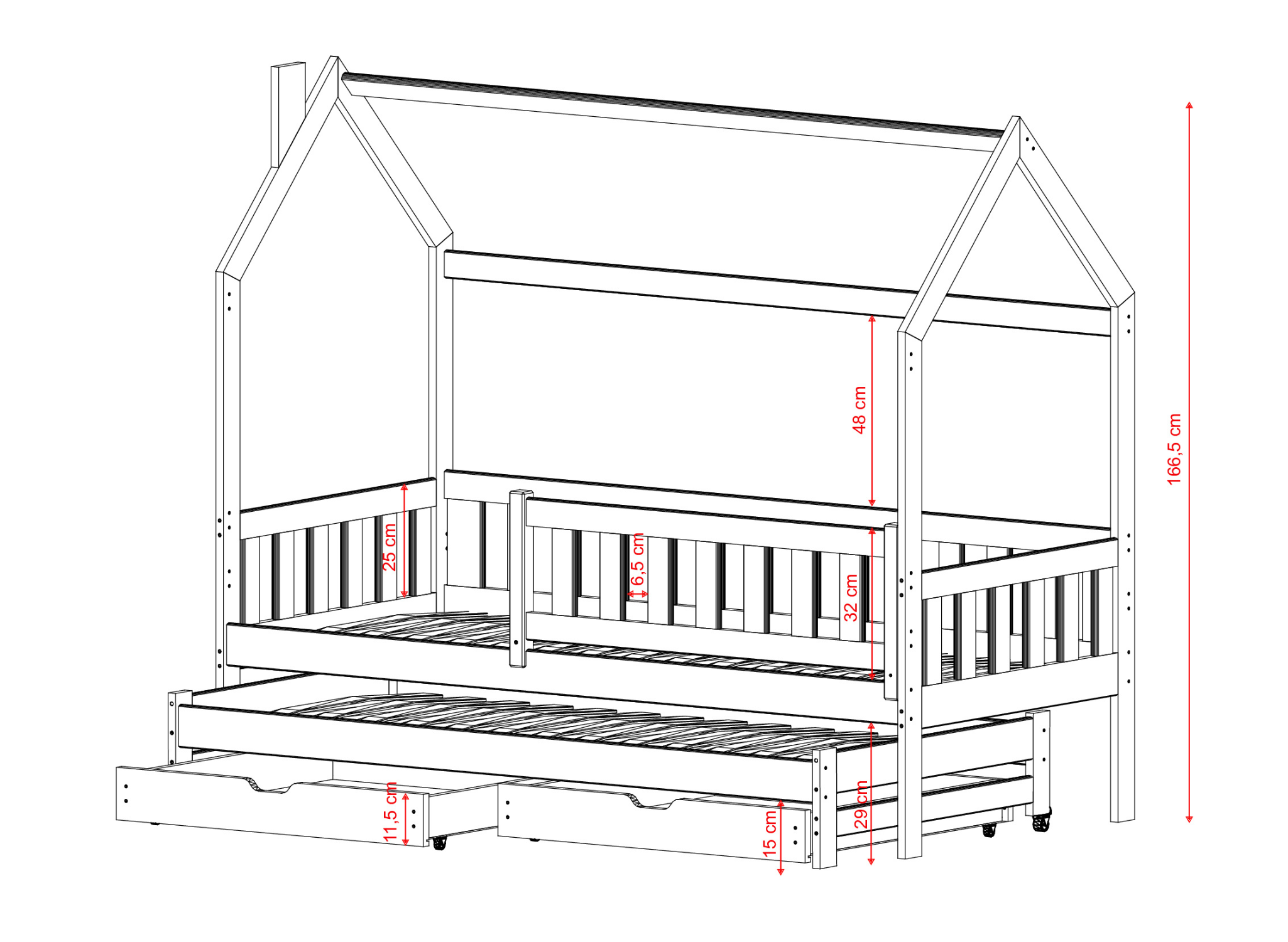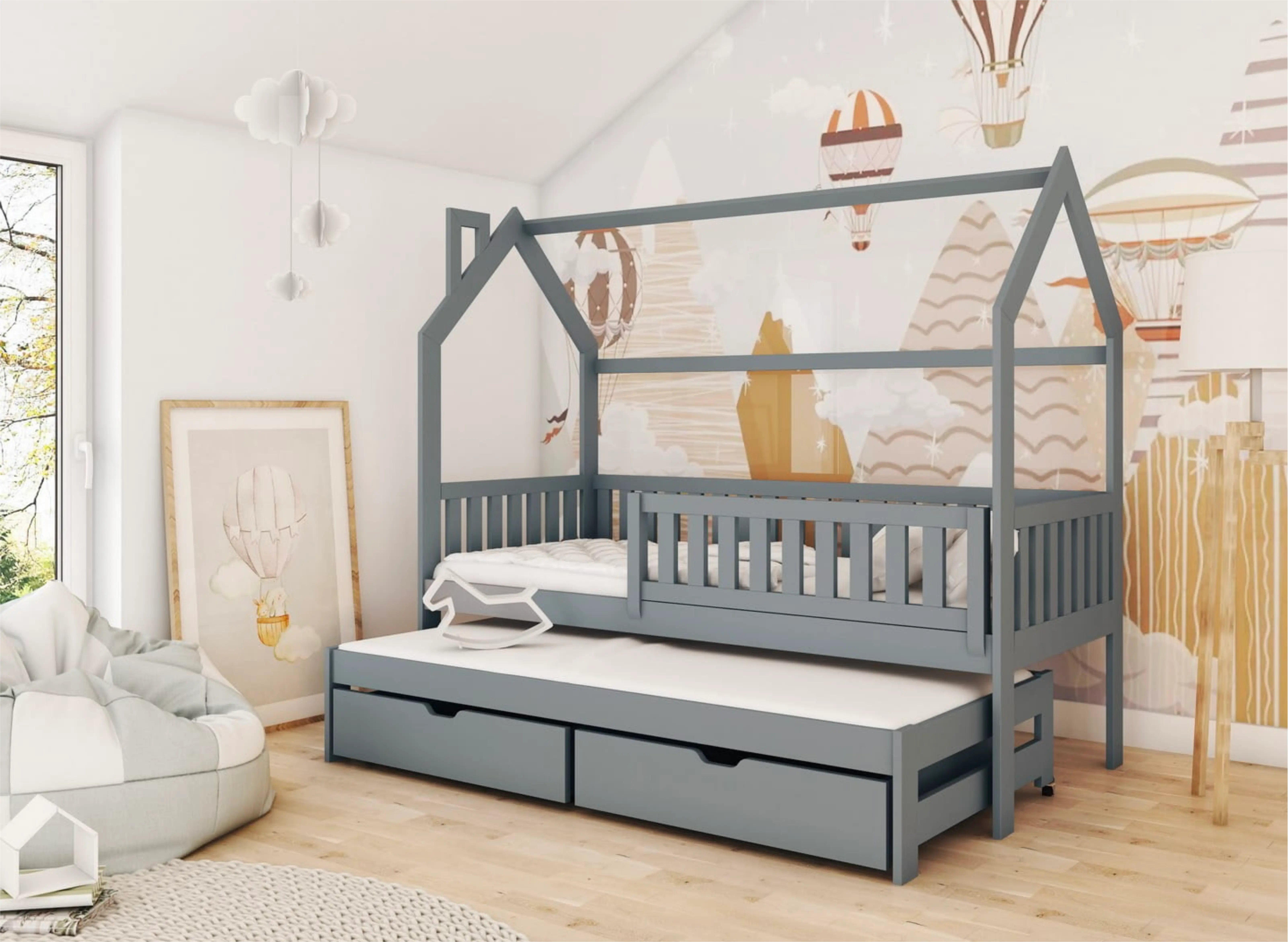 Které dítě nesní o posteli ve tvaru domečku? S ní vytvoříte pohádkovou scénu v dětském pokoji, které neodolá žádné dítě. A to ještě není všechno. Pečlivě propracovaná a konstruovaná s ohledem na zdravý spánek, dětská postel domeček MONKEY nabízí maximální komfort. Vyrobena z nejkvalitnějších surovin, je nesmírně pevná a zajišťuje bezpečí vašich dětí během spánku a hry. Dětská postel domeček MONKEY má také druhé výsuvné lůžko. To je příležitost zajistit krásné sny pro dva sourozence!