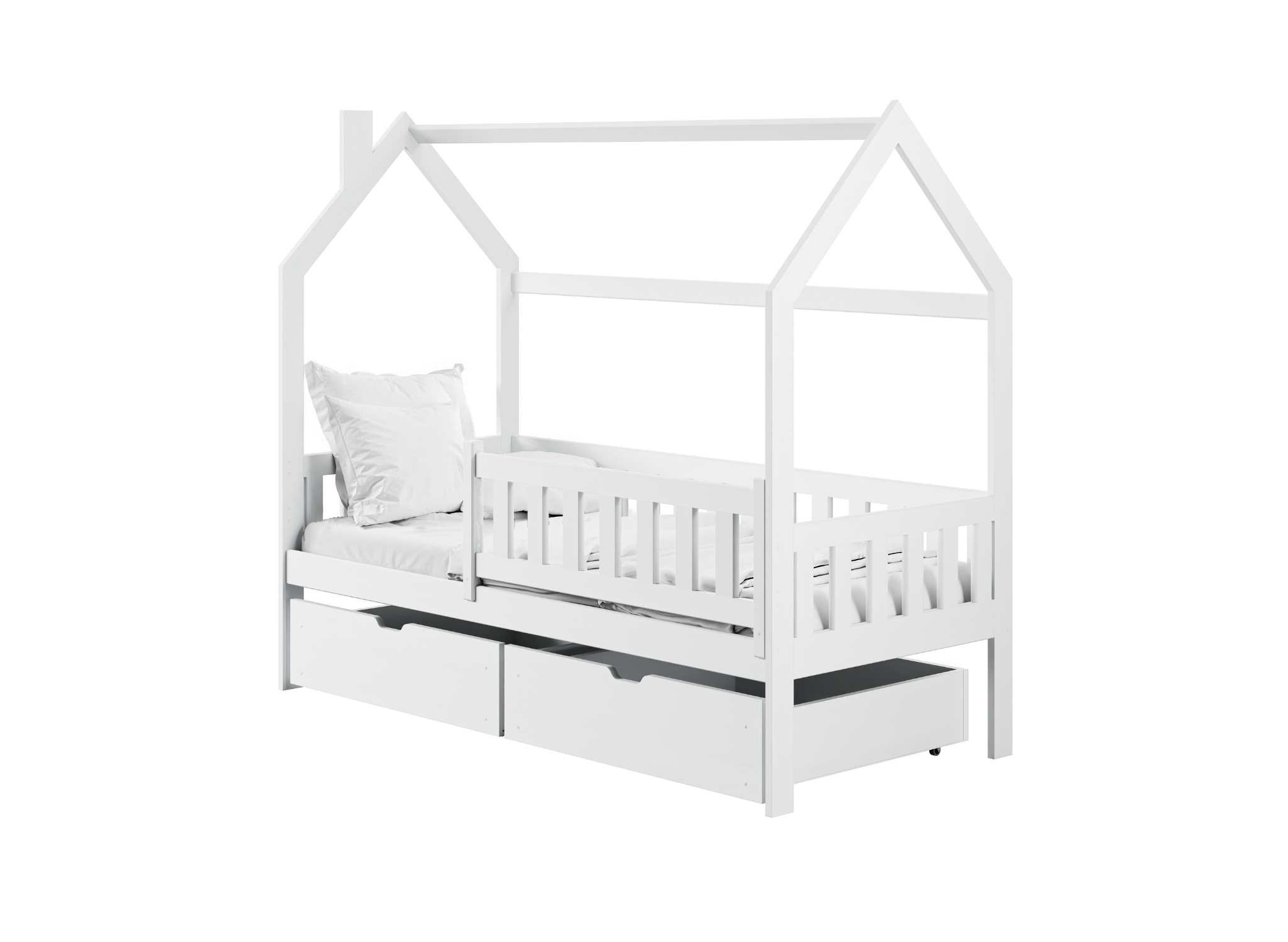 Klasika vždy v kurzu – bílá dětská postel domek NATAN 80x180
