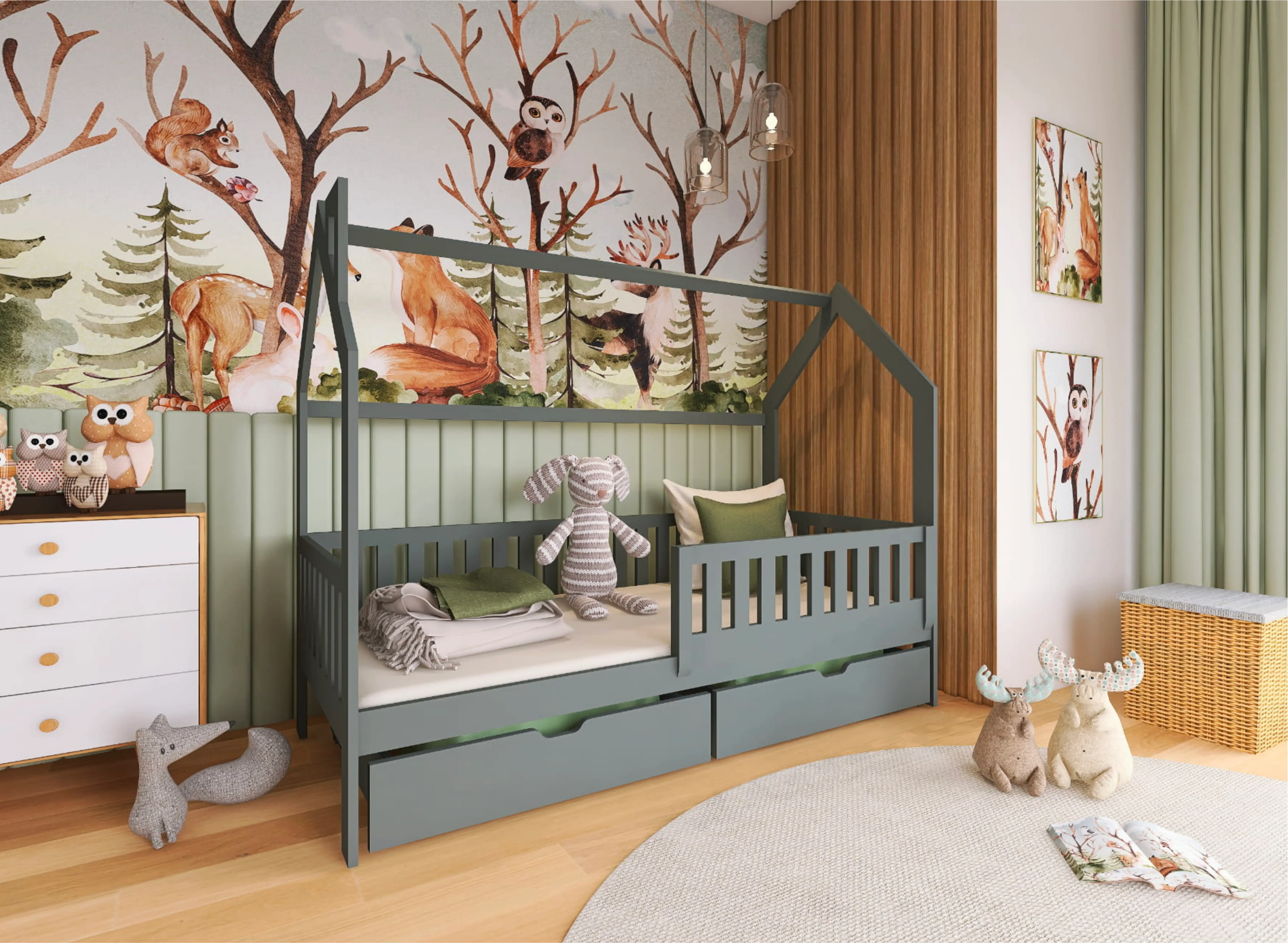 Roztomilý design, který vytváří krásné vzpomínky – grafitová dětská postel domeček NATAN