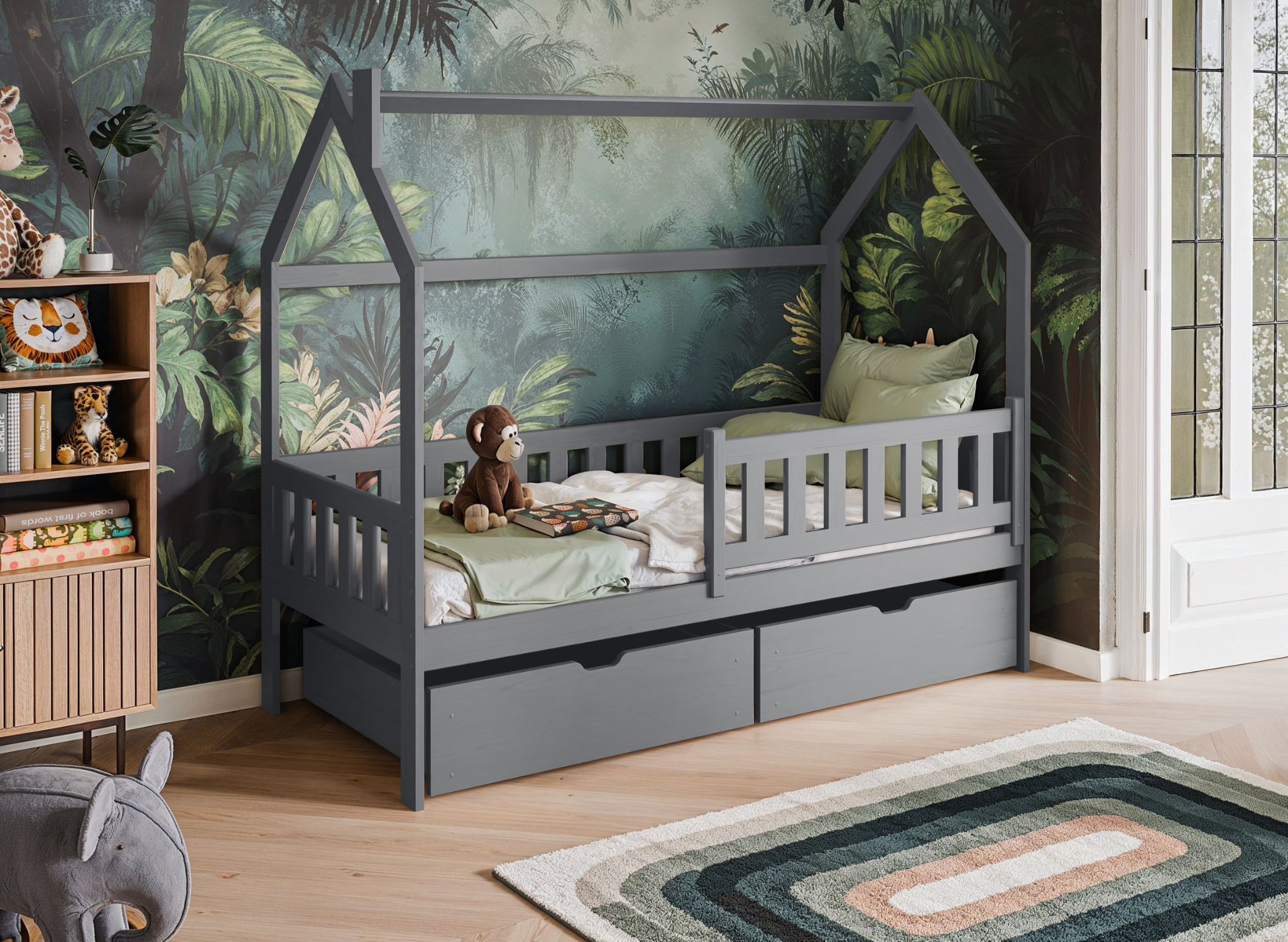 Bezpečnost je pro nás prioritou – dětská postel domek NATAN 90x200 v barvě popel