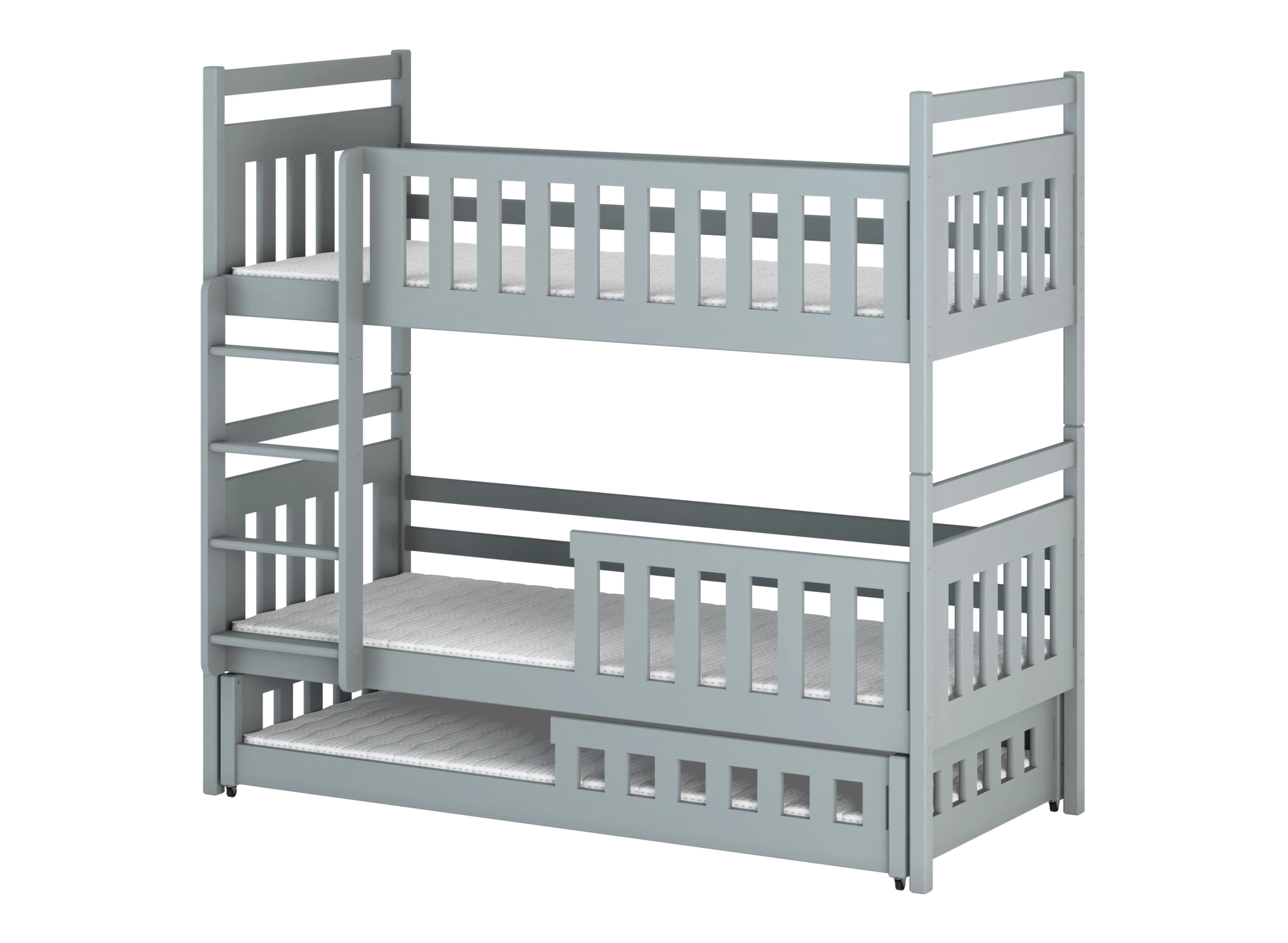 Naše patrová postel OLIWIA se skvěle hodí nejen do dětského pokoje, kde bydlí tři sourozenci, ale také do pokoje, kde bydlí dva bratři nebo sestry. A co třetí postel? Je to skvělé řešení, když vaše děti rády zvou kamarády na přespání, nebo když babička či dědeček přijdou na návštěvu ke svým vnoučatům a chtějí zůstat trochu déle.