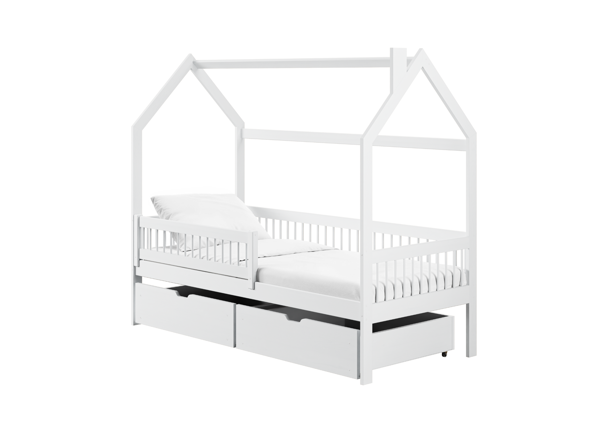 Dětská postel domek OSKAR je nábytek do dětského pokoje, který oživí interiér a zajistí klidný spánek vašeho malého. Jeho univerzální design dokonale zapadne do každého stylu, a roztomilý vzhled se zalíbí jak holčičkám, tak chlapečkům. Dětská postel domek OSKAR je splněním snů a styl přímo z nejlepších Disney pohádek. Každé dítě sní o pohodlném spaní, které mu umožní regeneraci po celém dni plném her a učení. To je možné díky pohodlnému roštu a vhodně vybrané matraci. Dětská postel domek OSKAR zajišťuje bezpečný a klidný spánek, ale nejen to. Vykouzlí úsměv na tváři při každém pohledu! Kromě toho má dětská postel domek OSKAR ještě více možností. Ve spodní části má dvě prostorné zásuvky, které vám pomohou lépe uspořádat prostor.