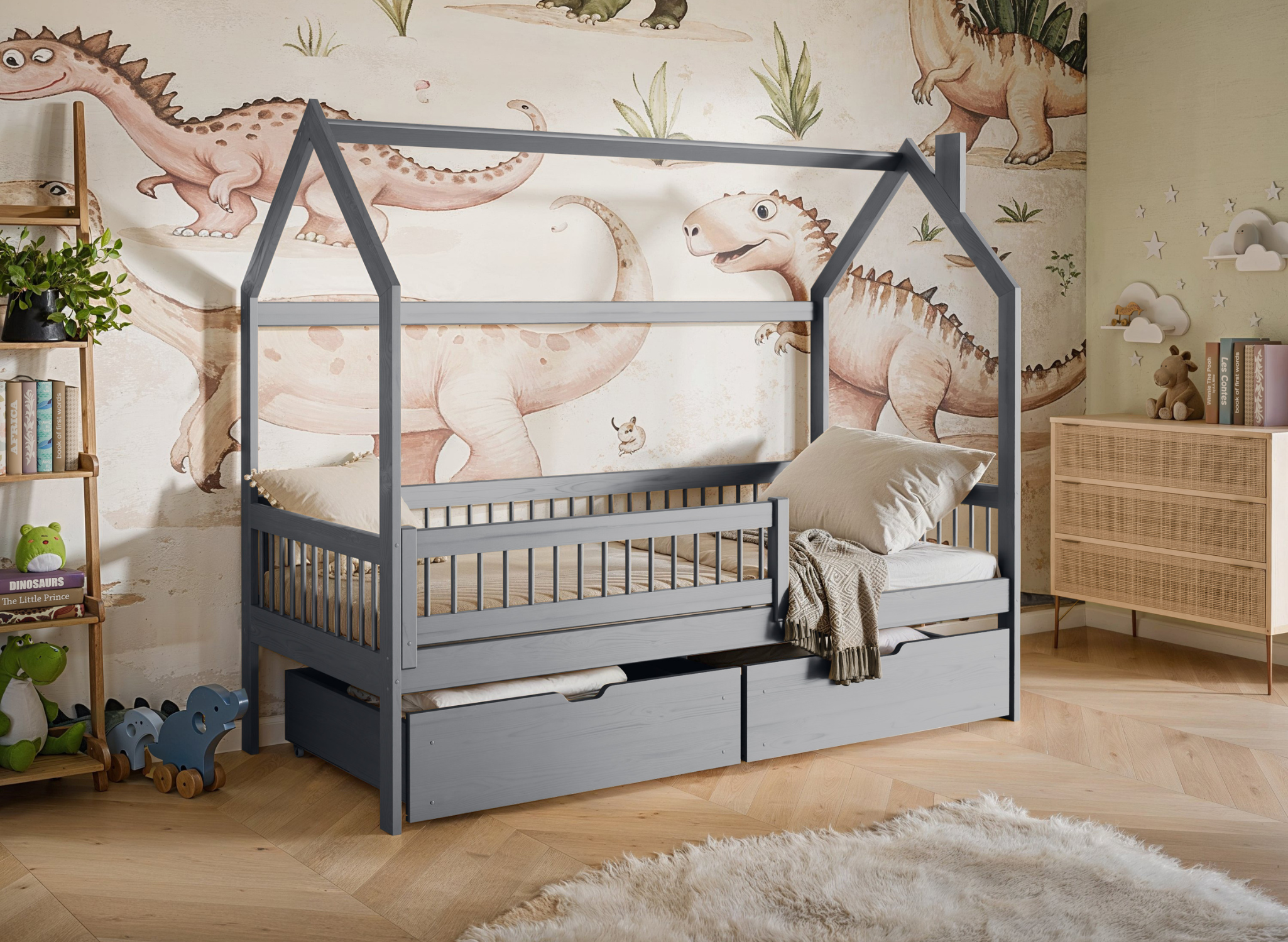 Vytvoř atmosféru příznivou pro krásné sny s dětskými postelemi domek OSKAR 90x200 v barvě popel