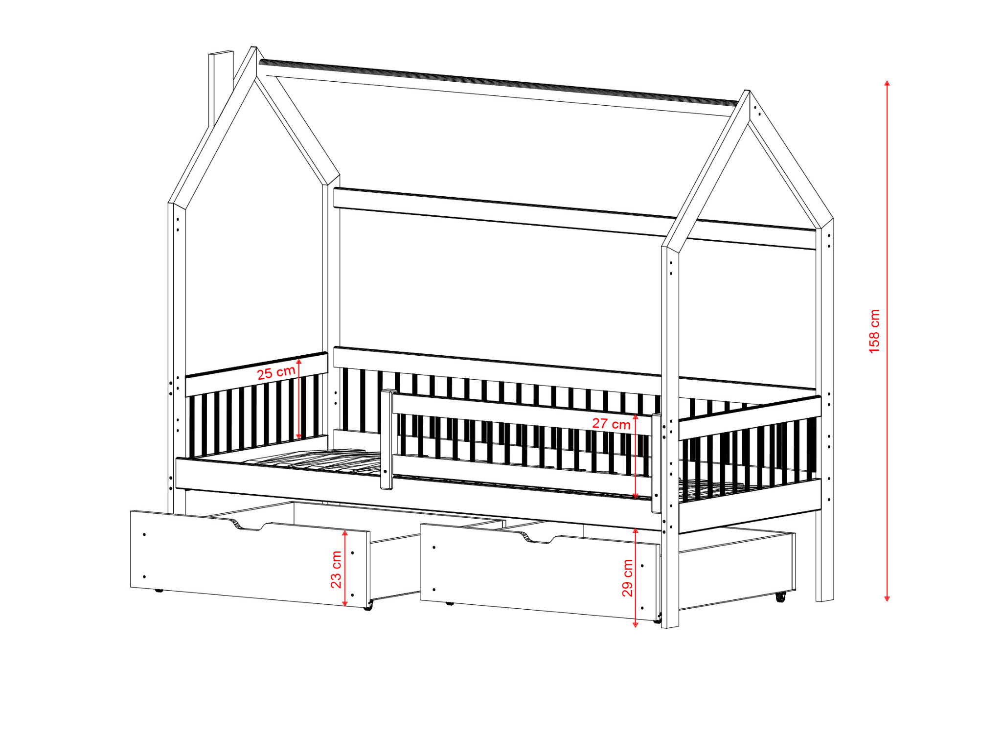 Dětská postel domek OSKAR je nábytek do dětského pokoje, který oživí interiér a zajistí klidný spánek vašeho malého. Jeho univerzální design dokonale zapadne do každého stylu, a roztomilý vzhled se zalíbí jak holčičkám, tak chlapečkům. Dětská postel domek OSKAR je splněním snů a styl přímo z nejlepších Disney pohádek. Každé dítě sní o pohodlném spaní, které mu umožní regeneraci po celém dni plném her a učení. To je možné díky pohodlnému roštu a vhodně vybrané matraci. Dětská postel domek OSKAR zajišťuje bezpečný a klidný spánek, ale nejen to. Vykouzlí úsměv na tváři při každém pohledu! Kromě toho má dětská postel domek OSKAR ještě více možností. Ve spodní části má dvě prostorné zásuvky, které vám pomohou lépe uspořádat prostor.