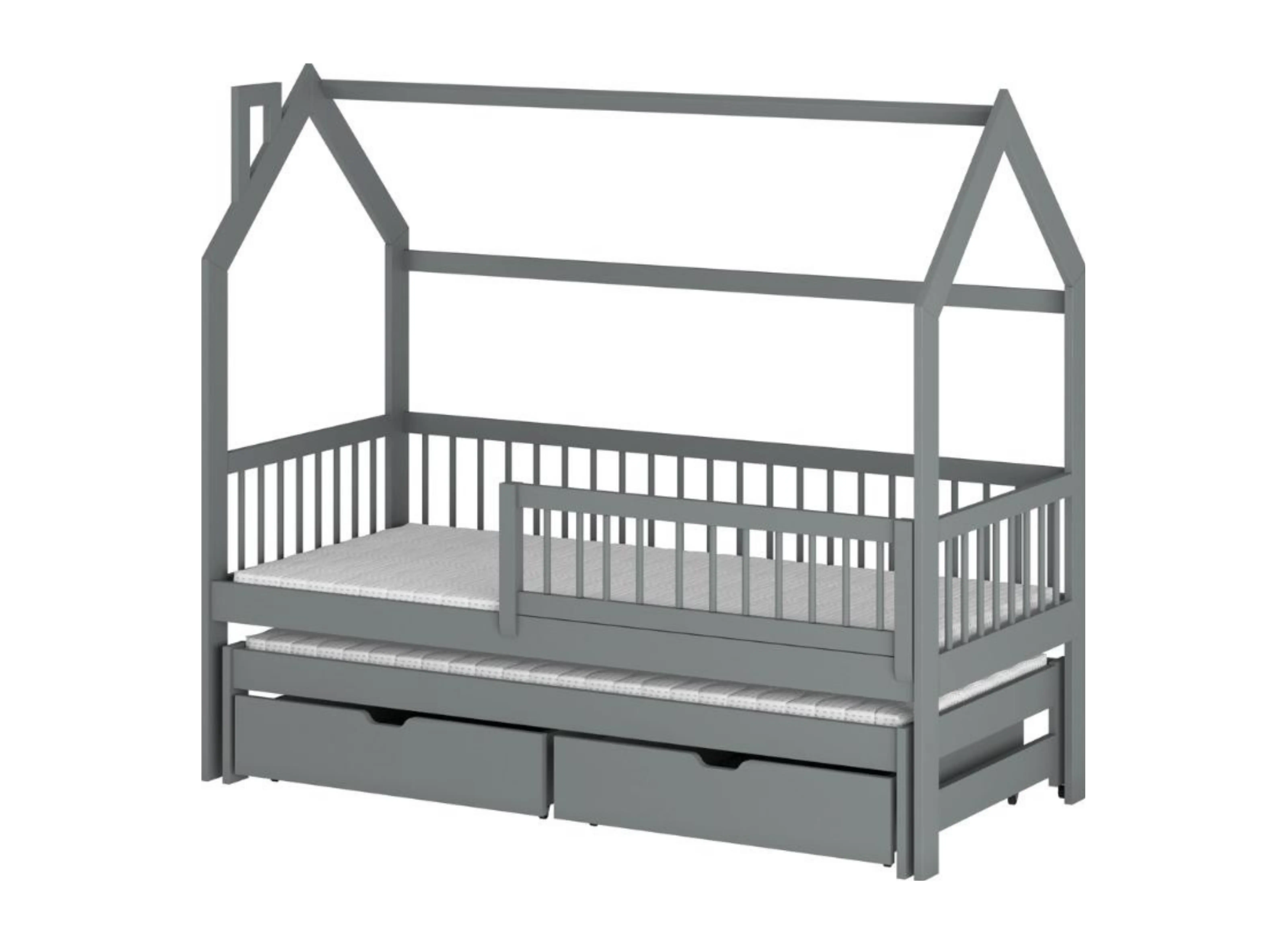 Spěte klidně s grafitovou dětskou postelí domeček PAPI od Lano Meble