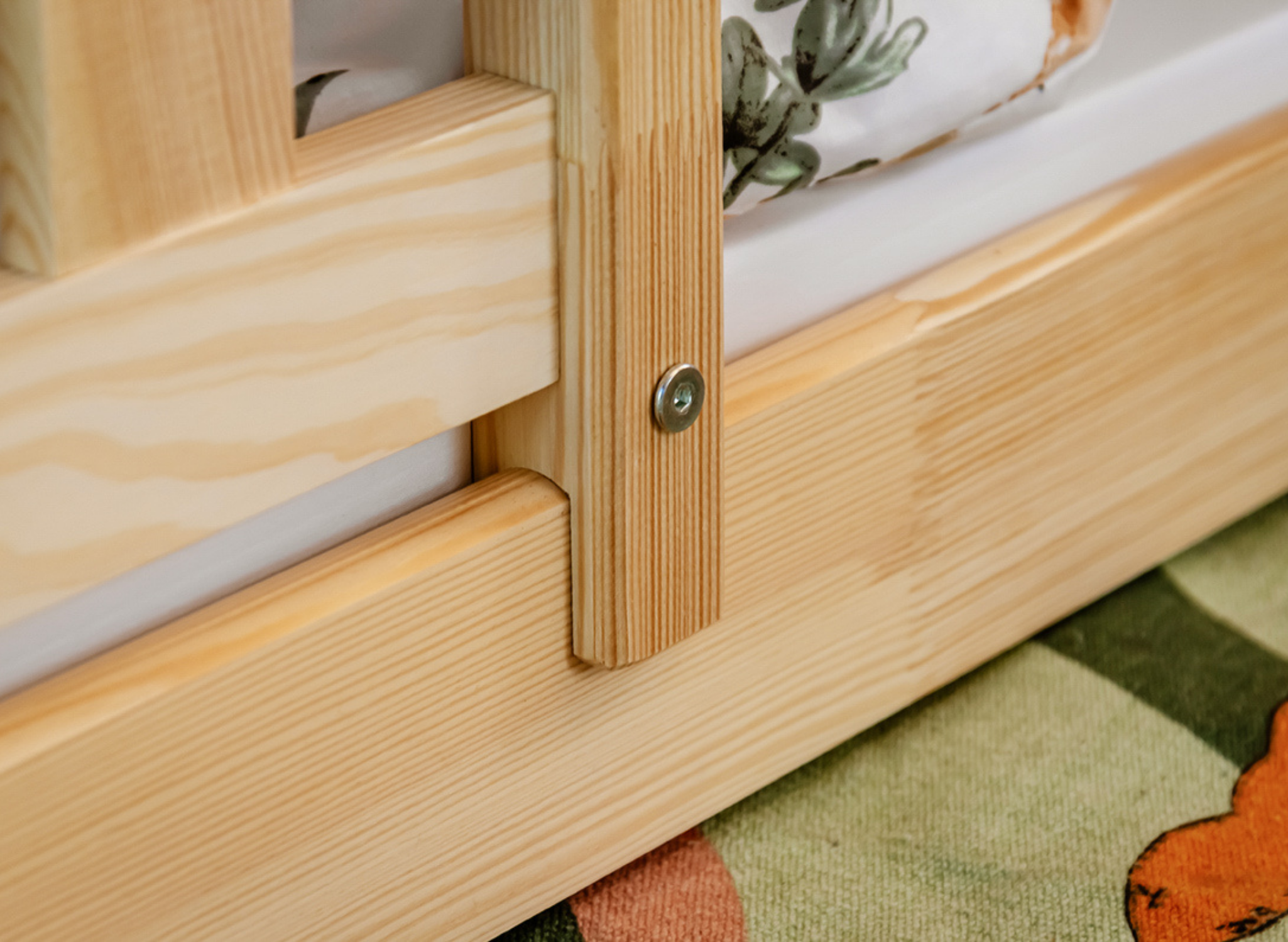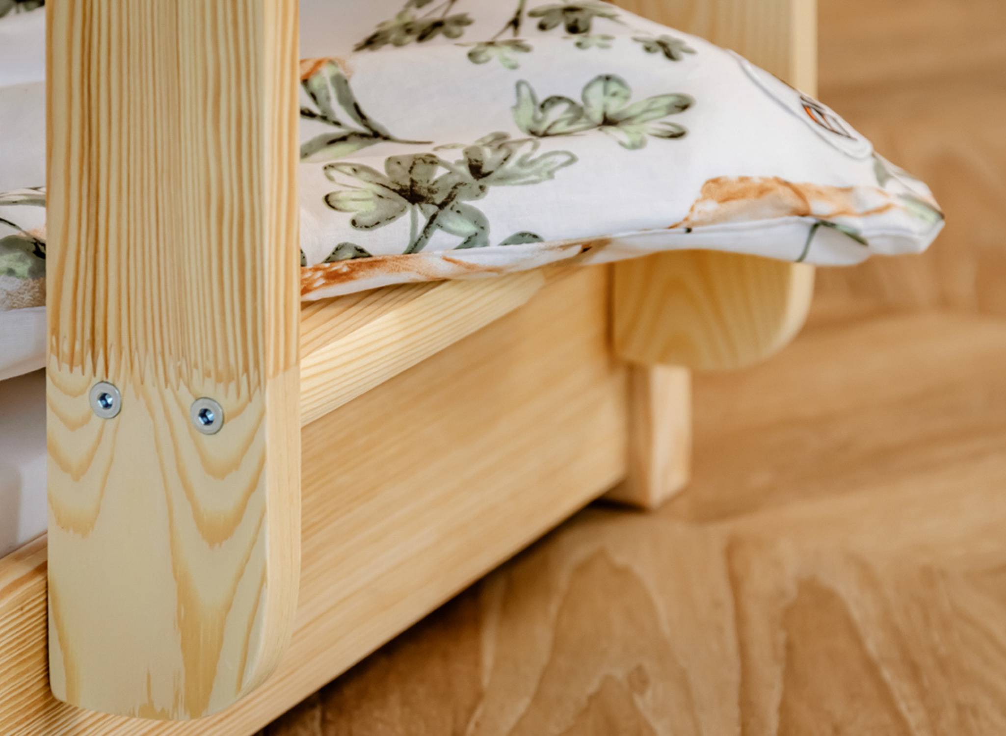 Nejbližší okolí vašeho dítěte by mělo být pro něj bezpečné, podporovat jeho rozvoj a umožnit mu svobodné poznávání světa. Patrová postel domeček POLA splňuje všechny tyto požadavky. Vyniká efektním tvarem domečku, má vhodná zabezpečení, je vyrobena z přírodního borovicového dřeva a ochráněna certifikovaným lakem. Patrová postel typu domeček POLA je určena pro sourozence, kde každý malý má své vlastní místo na spaní. Jednou z našich priorit v Lano Meble je bezpečnost dítěte. Patrová postel typu domeček POLA bude ideální jako první postel hned po typické kojenecké postýlce s příčkami. Spodní rám a matrace na spaní jsou velmi nízko, mají přímý kontakt s podlahou, což usnadňuje dítěti vstup a chrání před nepříjemnými následky pádu. Starší děti, i ty živější, najdou svůj bezpečný prostor nahoře, kde je dětská postel domeček POLA zajištěna dřevěnou zábranou.