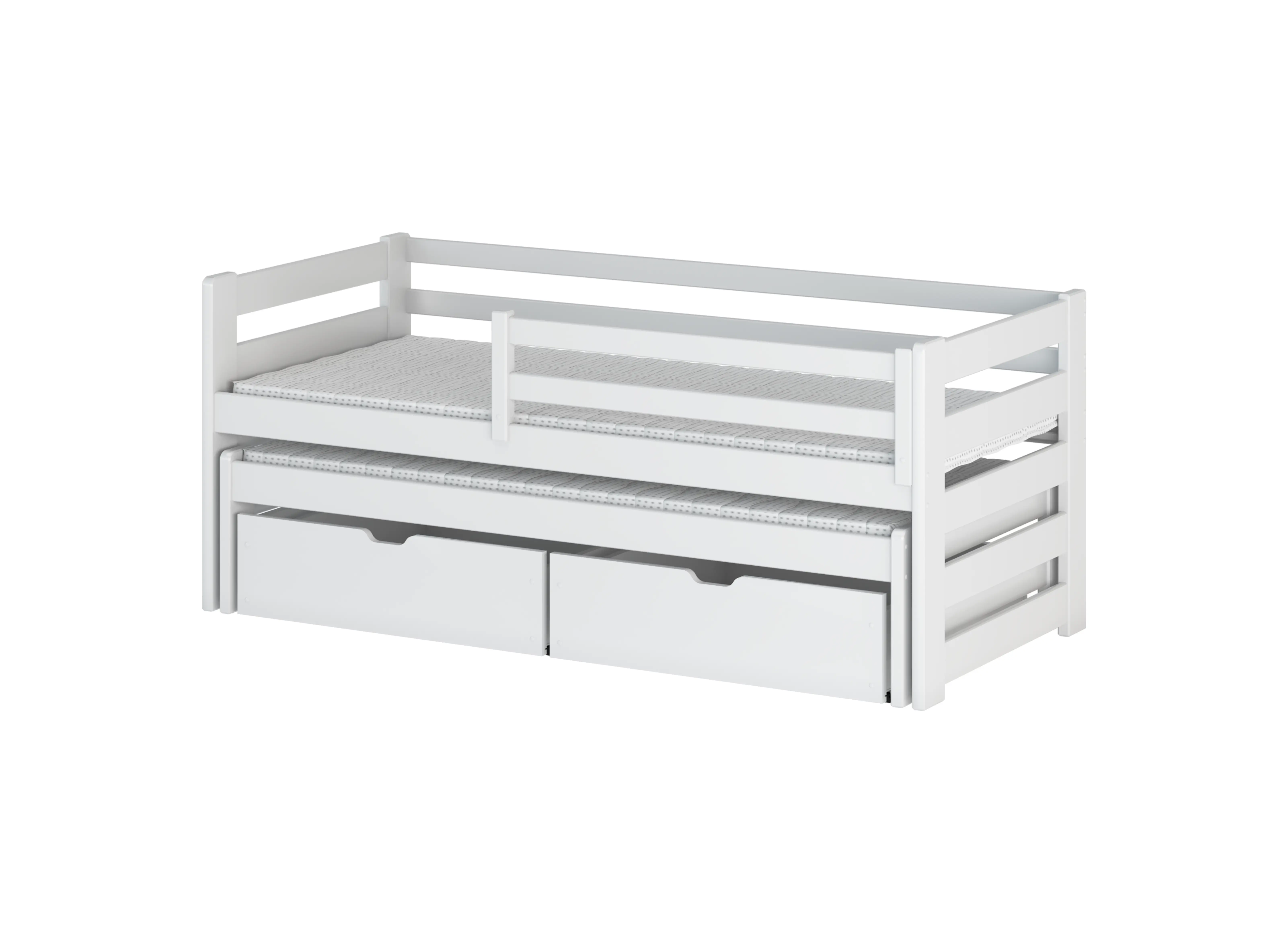 Konečný vzhled postele pro sourozence SENSO závisí na vás. Můžete rozhodnout o typu matrací podle individuálních potřeb a preferencí dětí. Každá ze dvou matrací může být jiná. Při objednávce si také vybíráte možnost se zásuvkami nebo bez.