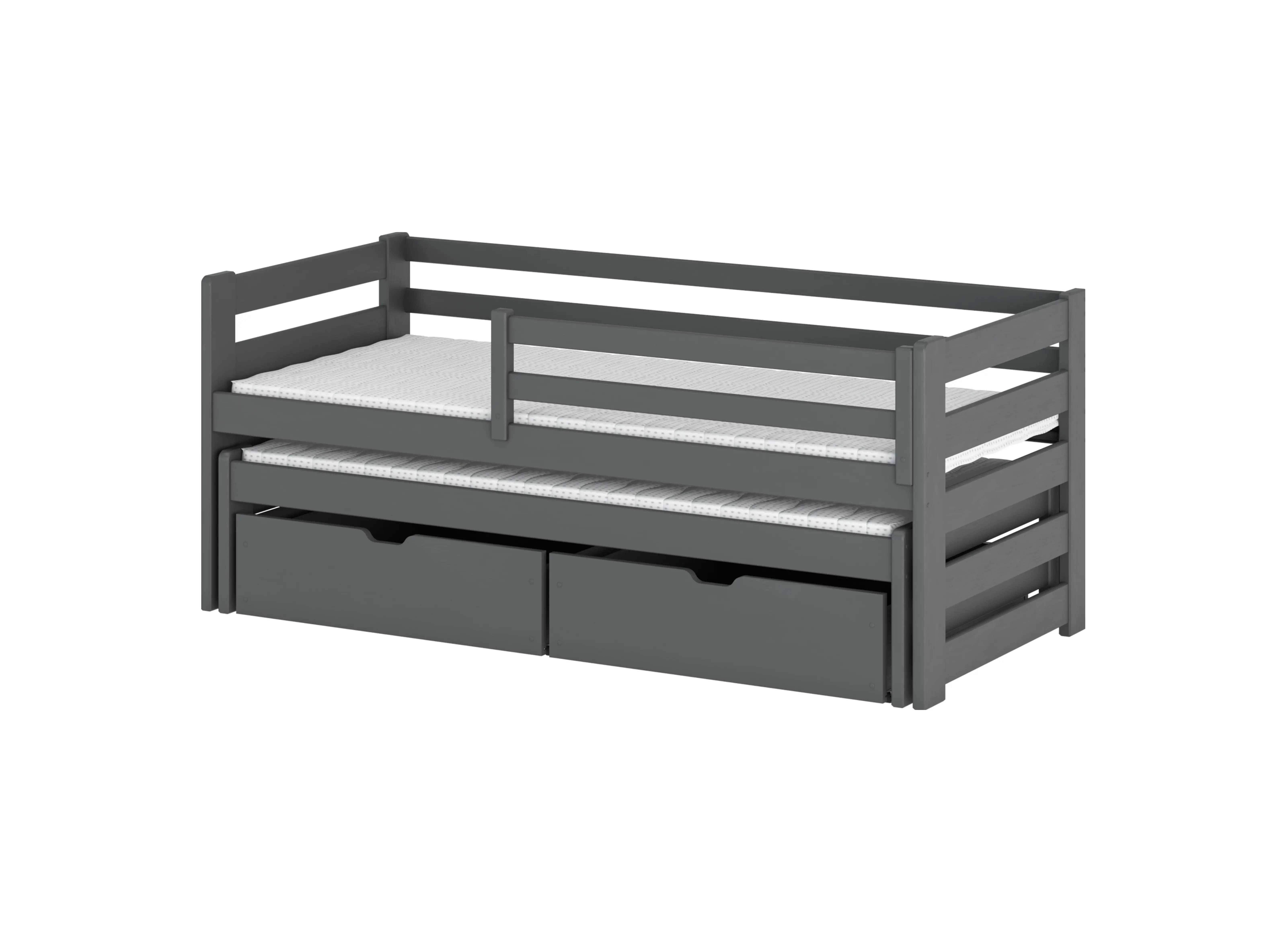 Konečný vzhled postele pro sourozence SENSO závisí na vás. Můžete rozhodnout o typu matrací podle individuálních potřeb a preferencí dětí. Každá ze dvou matrací může být jiná. Při objednávce si také vybíráte možnost se zásuvkami nebo bez.
