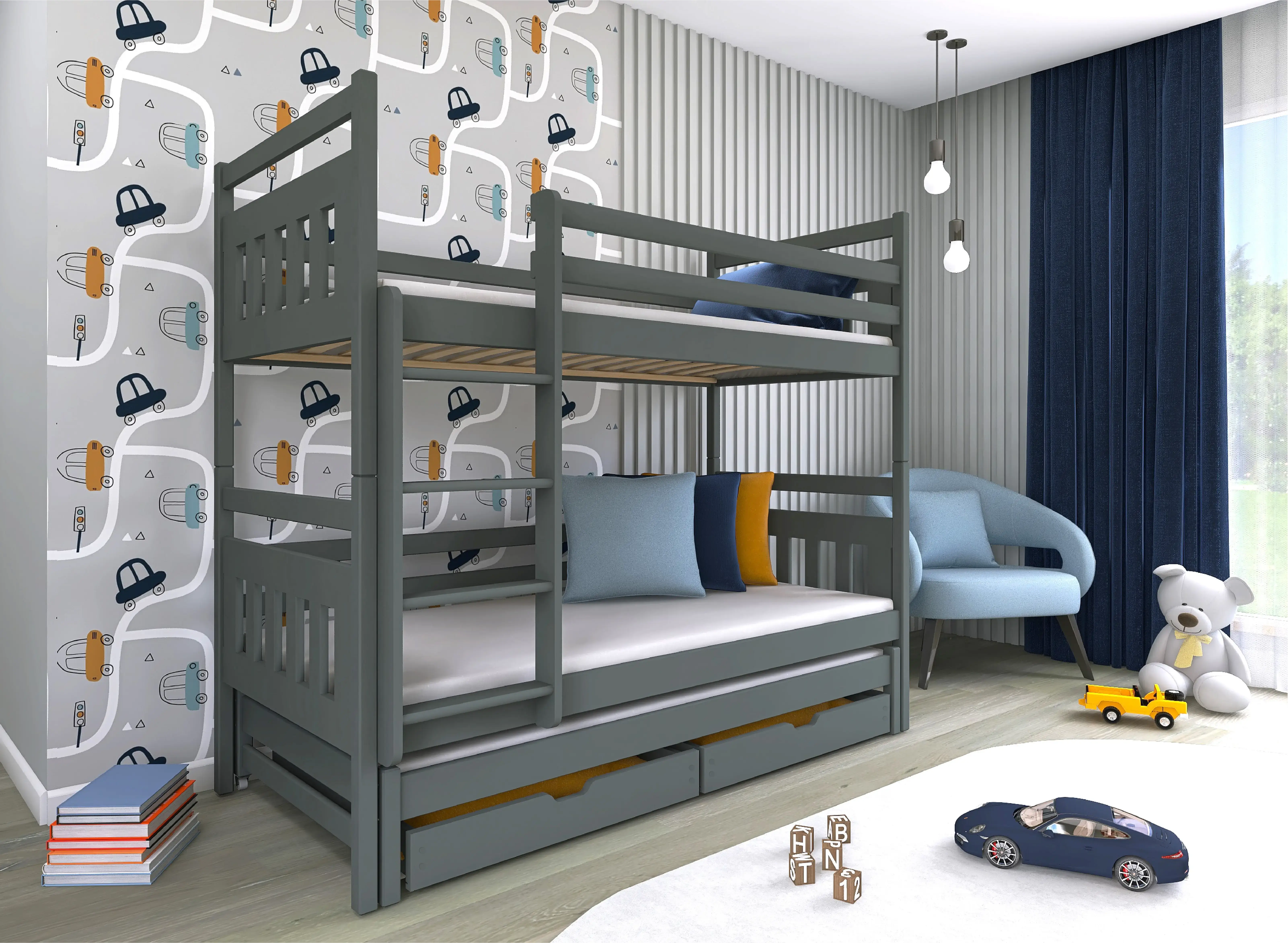 Zorganizujte prostor v pokoji svých dětí s grafitovou patrovou postelí SEWERYN 80x170 od Lano Meble