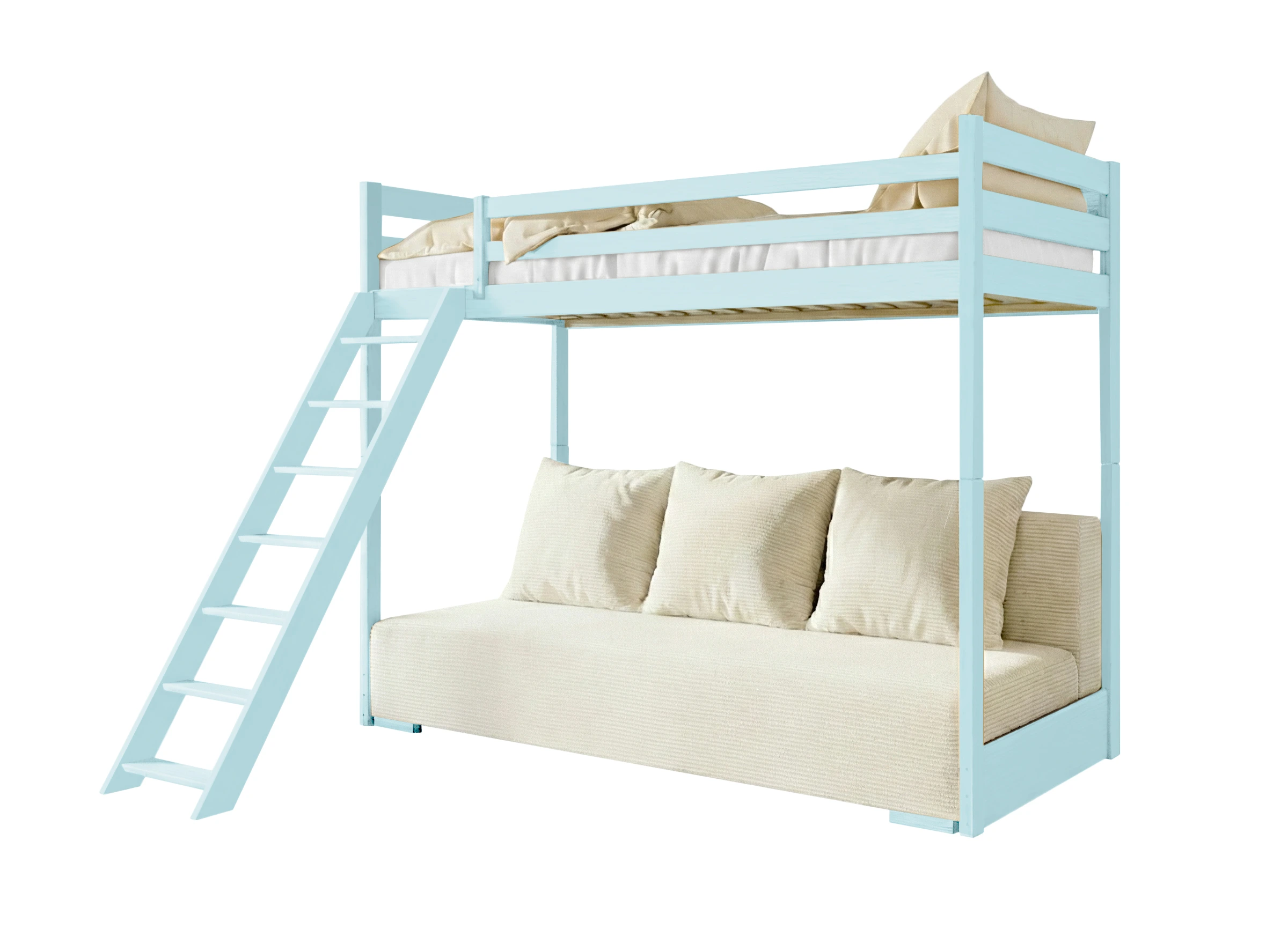 SOFINO 90x200/140x200 modré lůžko na patrové posteli s rozkládací pohovkou béžová látka poso 38 Lano Nábytek