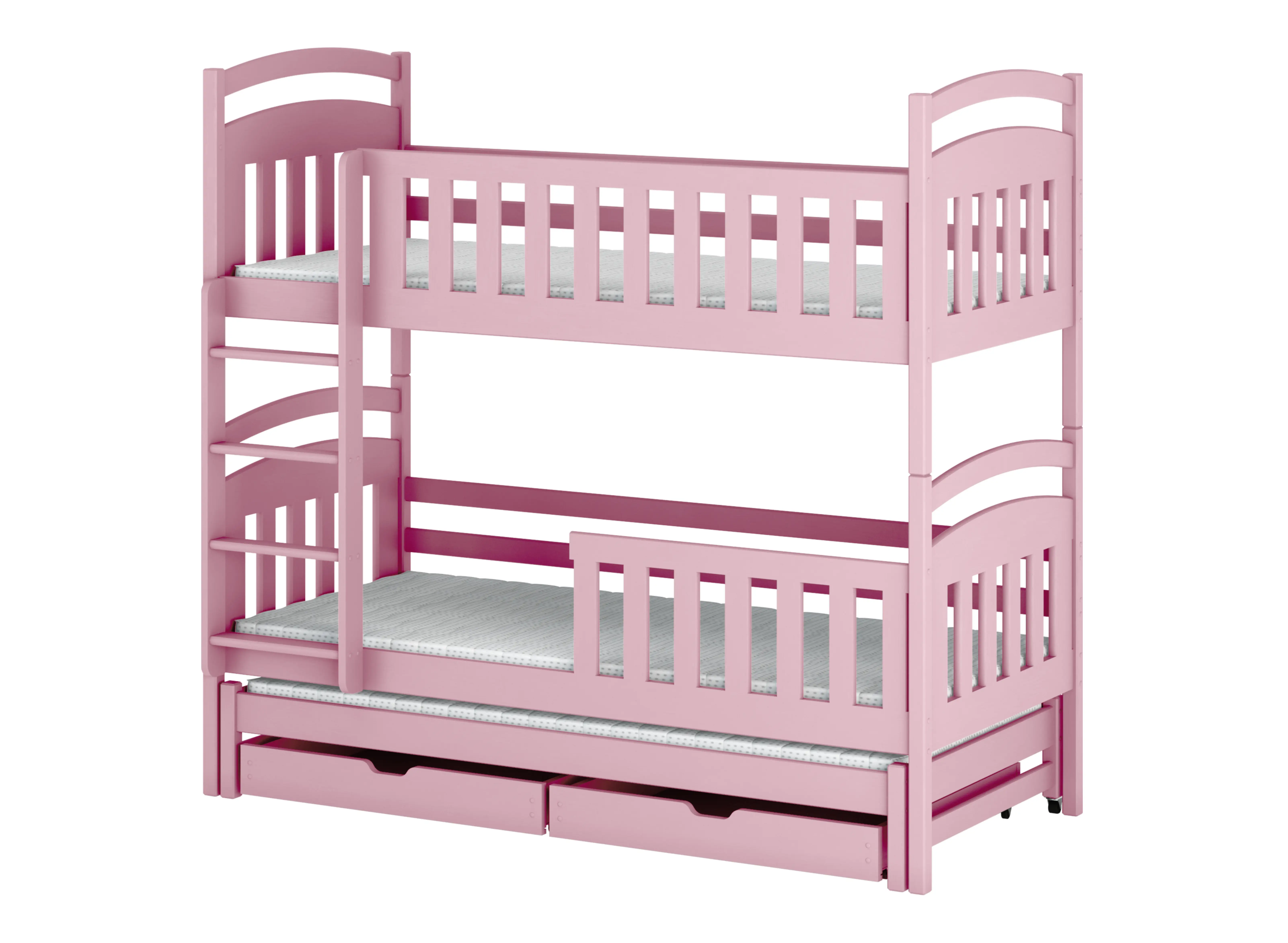 Dřevěná růžová patrová postel VIKI – bezpečná i pro ty nejmenší