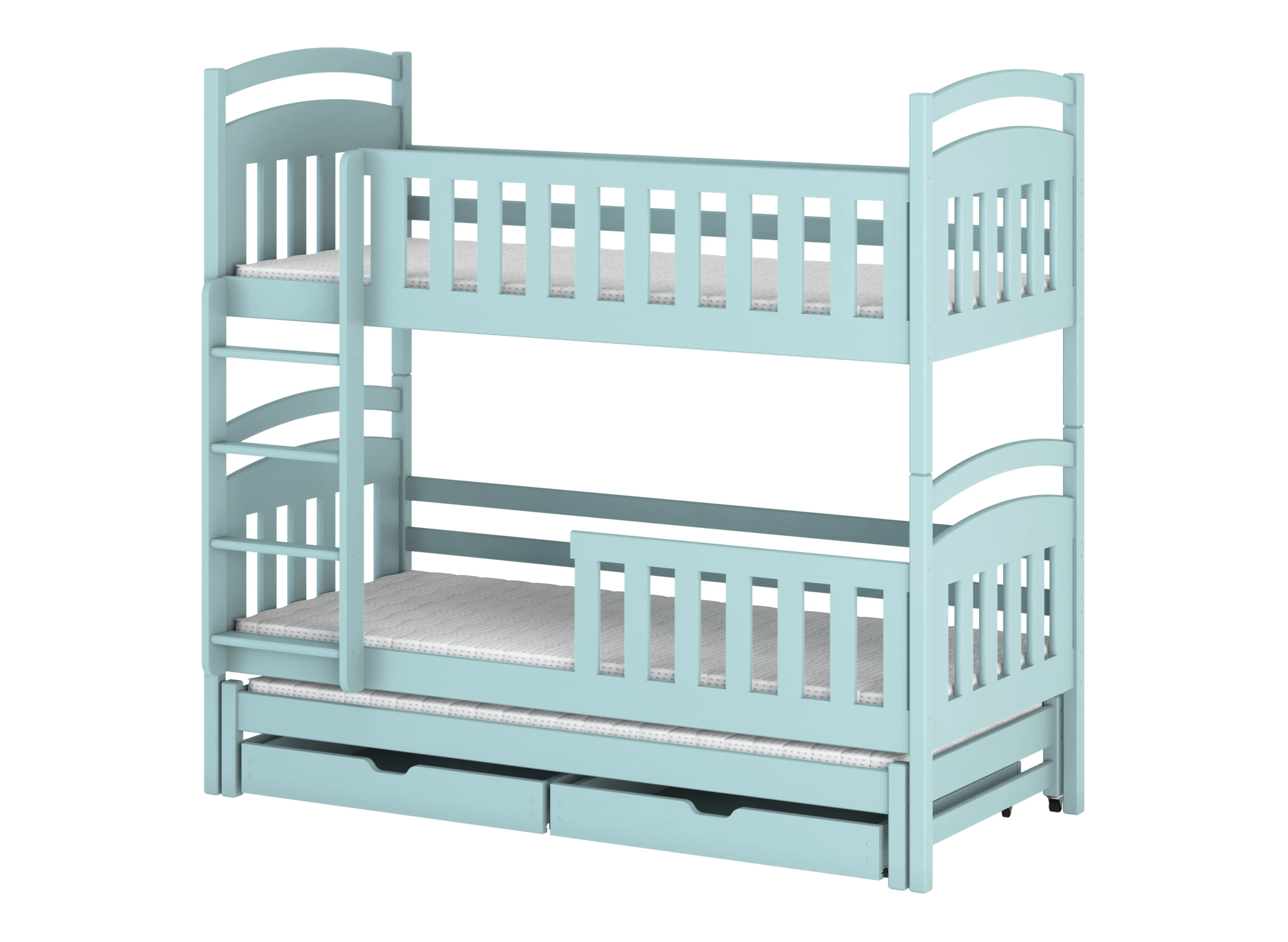 Patrové lůžko VIKI je vyrobeno z borovicového dřeva. Tento materiál je trvanlivý, odolný proti mechanickému poškození a vysokému zatížení. Konstrukce lůžka pro sourozence VIKI je tedy nesmírně pevná. Kromě toho je to postel se zásuvkami, které poskytují další úložný prostor například pro ložní prádlo nebo hračky.