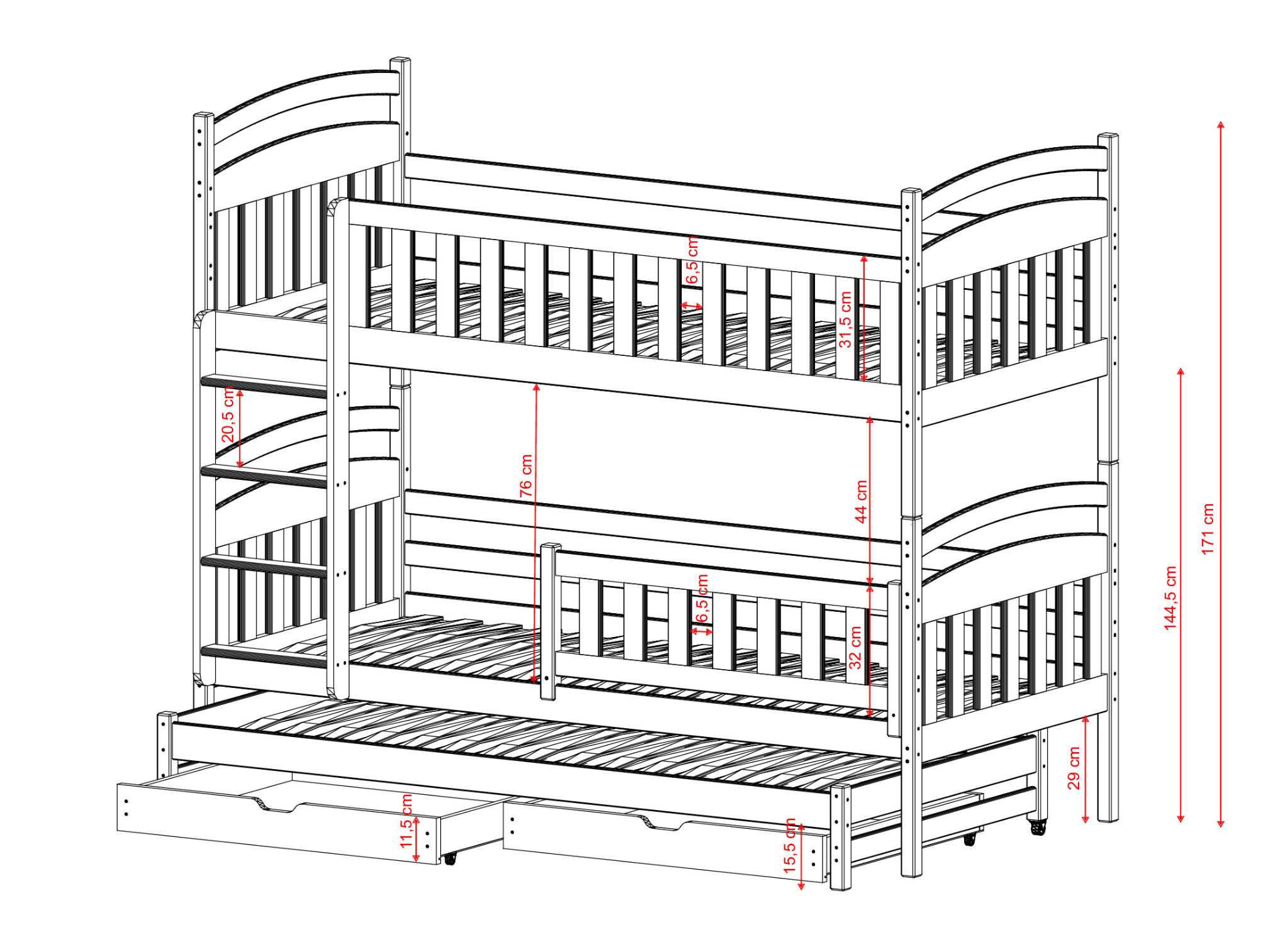 | Výška postele | 171 cm |