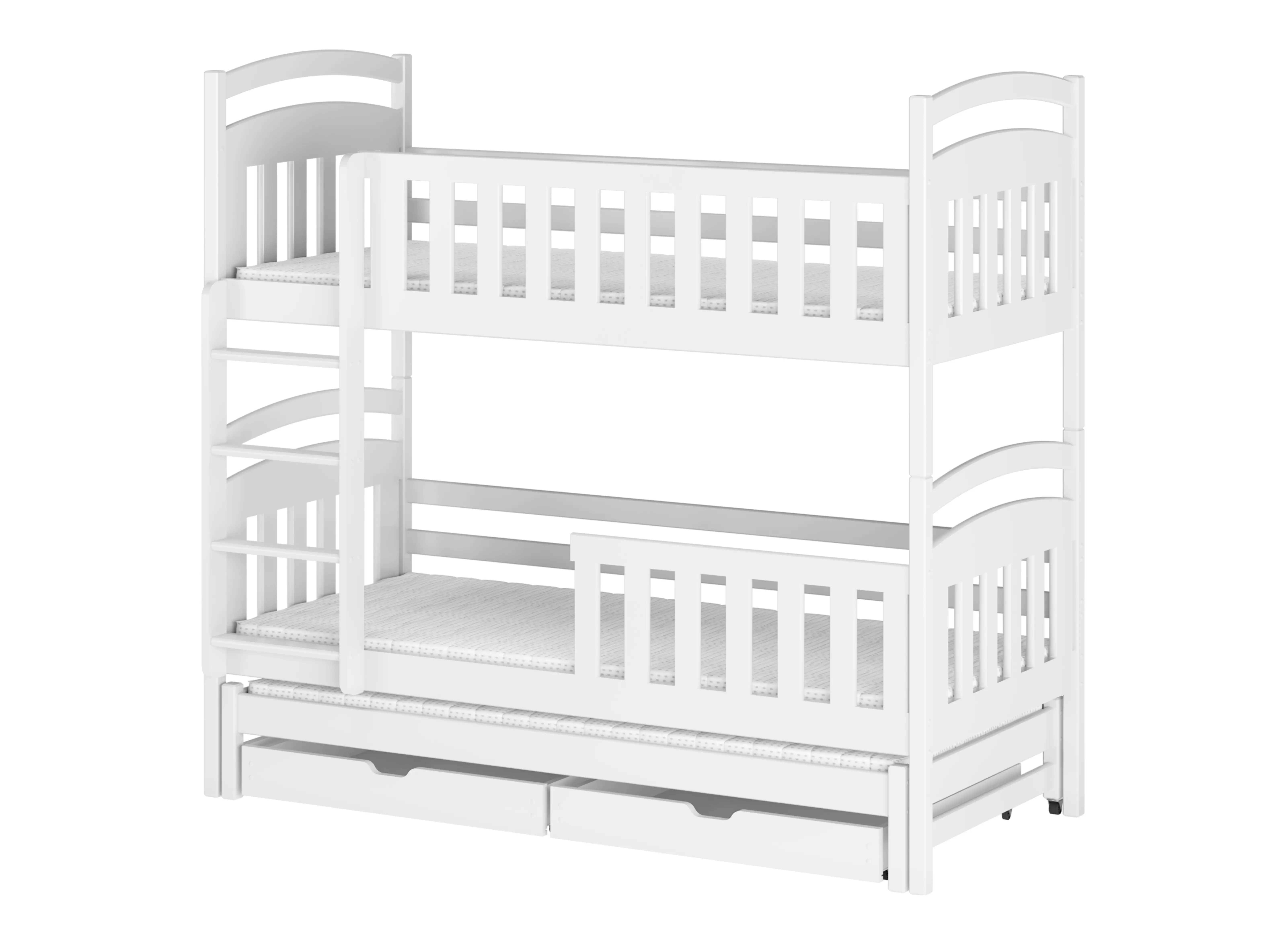 Patrové lůžko VIKI je vyrobeno z borovicového dřeva. Tento materiál je trvanlivý, odolný proti mechanickému poškození a vysokému zatížení. Konstrukce lůžka pro sourozence VIKI je tedy nesmírně pevná. Kromě toho je to postel se zásuvkami, které poskytují další úložný prostor například pro ložní prádlo nebo hračky.