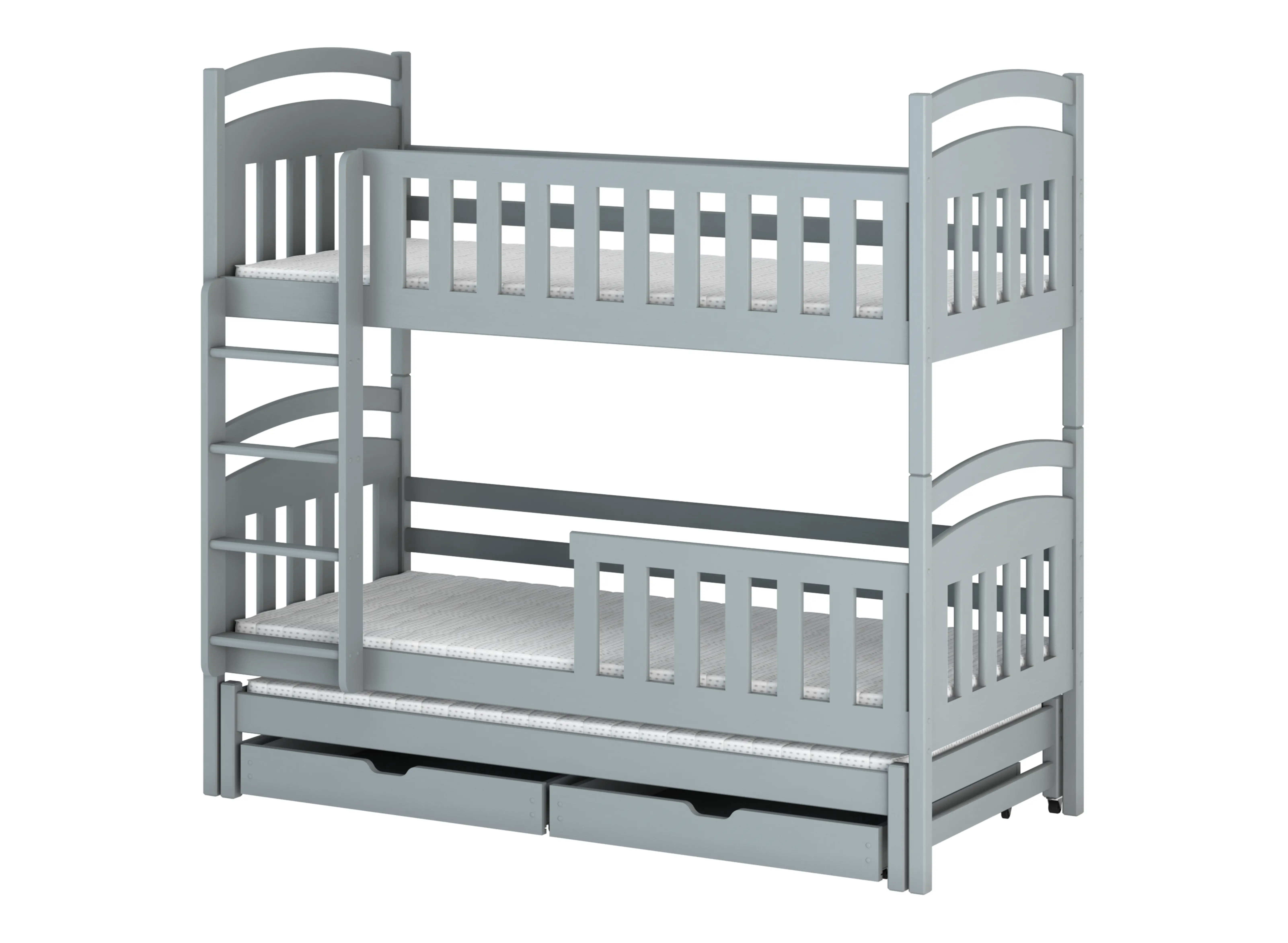 Patrové lůžko VIKI je vyrobeno z borovicového dřeva. Tento materiál je trvanlivý, odolný proti mechanickému poškození a vysokému zatížení. Konstrukce lůžka pro sourozence VIKI je tedy nesmírně pevná. Kromě toho je to postel se zásuvkami, které poskytují další úložný prostor například pro ložní prádlo nebo hračky.