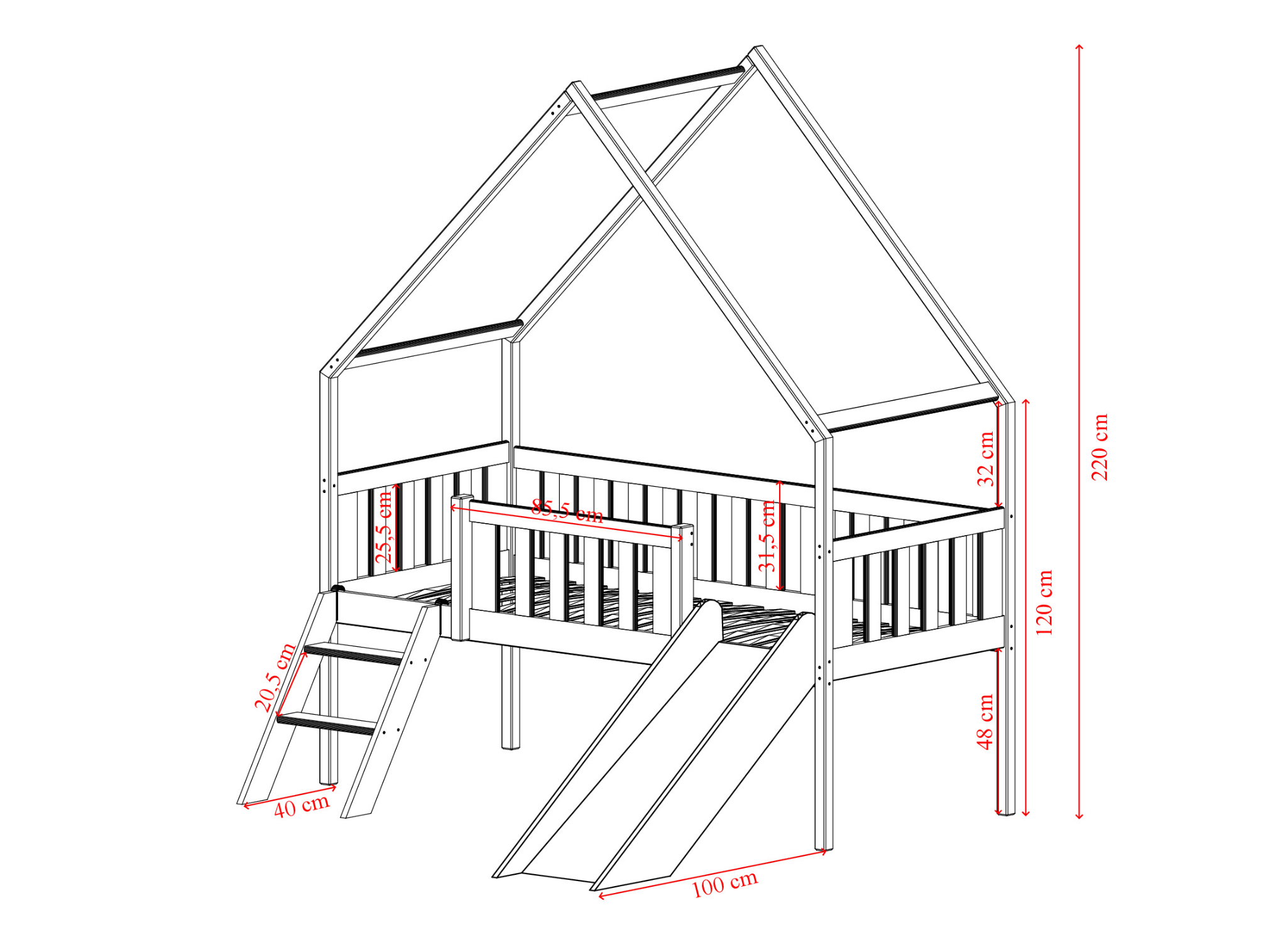 ANGEL 80x180 borovicová jednolůžková dětská postel domeček se skluzavkou Lano Nábytek